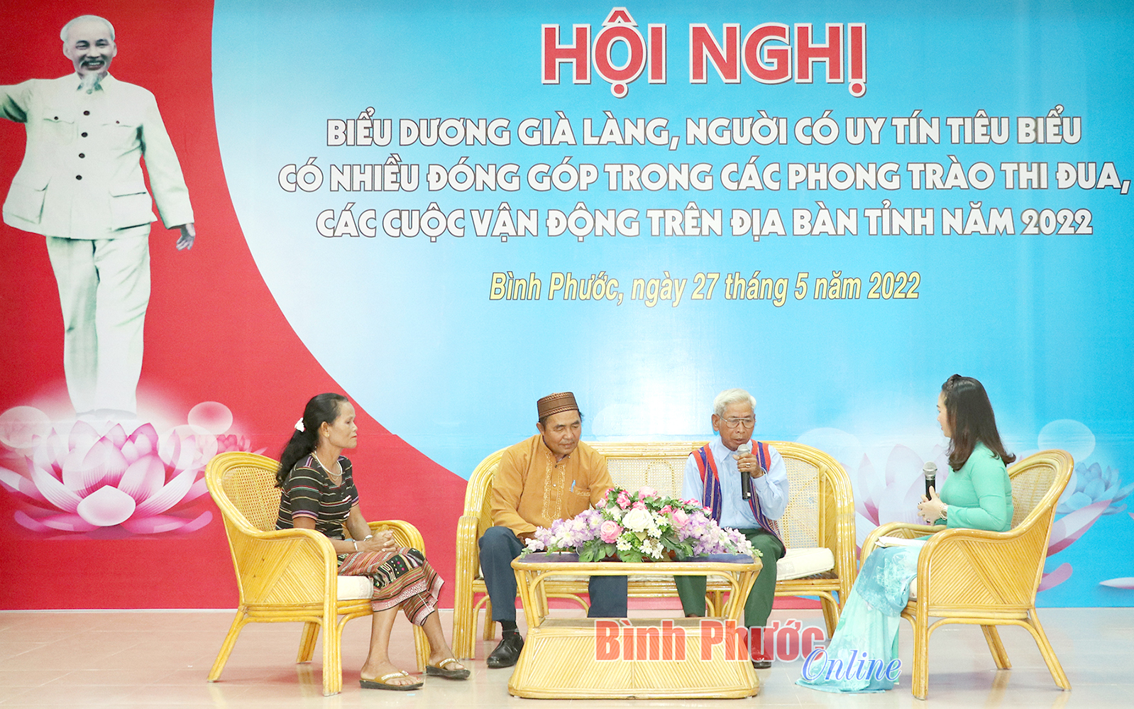 Già làng, người có uy tín tham gia tọa đàm, trao đổi về những mô hình hay, cách làm hiệu quả trong thực hiện các phong trào thi đua yêu nước và các cuộc vận động của tỉnh thời gian qua - Ảnh: Như Nam