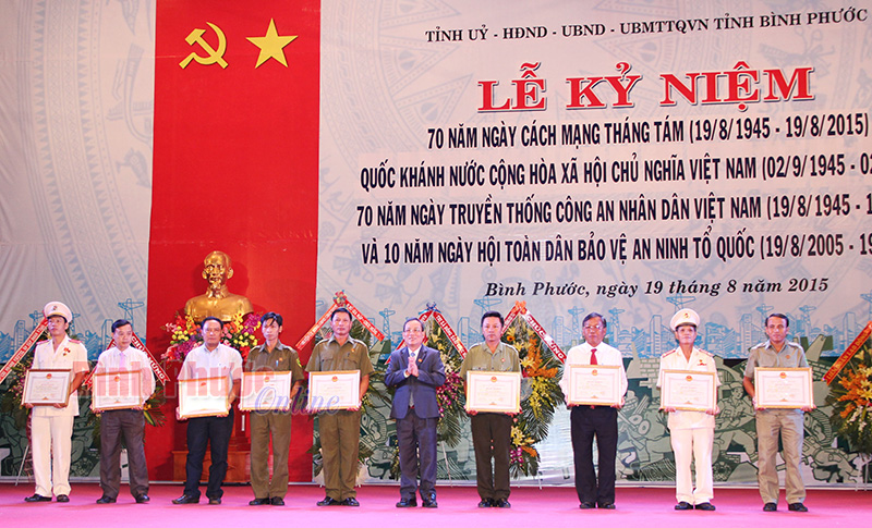 Cũng đúng vào dịp kỷ niệm 70 năm Cách mạng tháng Tám, Quốc khánh nước Cộng hòa xã hội chủ nghĩa Việt Nam, toàn Đảng, toàn dân và toàn quân ta nói chung, Đảng bộ, chính quyền, dân và quân tỉnh Bình Phước hân hoan chào mừng kỷ niệm 70 năm ngày truyền thống Công an nhân dân Việt Nam và 10 năm ngày hội toàn dân bảo vệ an ninh Tổ quốc.