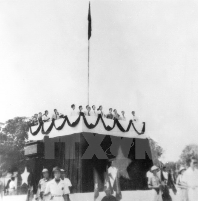 Bức ảnh Chủ tịch Hồ Chí Minh đọc Tuyên ngôn Độc lập, khai sinh nước Việt Nam Dân chủ Cộng hòa ngày 2-9-1945 tại quảng trường Ba Đình lịch sử, được VNTTX phát và lưu trữ từ ngày đầu cách mạng.