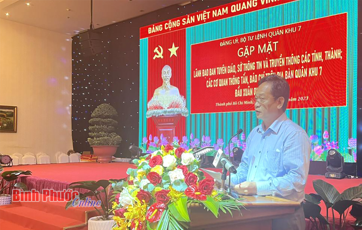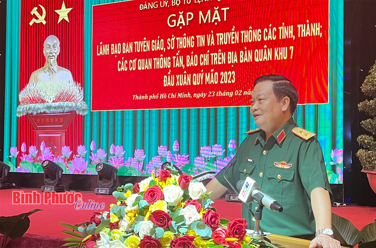 Phát biểu tại buổi gặp mặt, Trung tướng Trần Hoài Trung, Bí thư Đảng ủy, Chính ủy Quân khu 7 bày tỏ niềm phấn khởi, vui mừng và đánh giá cao những thành tựu, đóng góp to lớn mà ngành tuyên giáo, cơ quan thông tấn, báo chí đã đạt được trong sự nghiệp xây dựng và bảo vệ Tổ quốc. Điểm nổi bật là niềm tin của xã hội được củng cố và tăng cường. Dân tin Đảng, đồng thuận với chính quyền, thương yêu đùm bọc LLVT, hăng hái thực hiện tốt chủ trương, đường lối của Đảng, chính sách, pháp luật của Nhà nước, thực hiện tốt nghĩa vụ xây dựng và bảo vệ Tổ quốc.