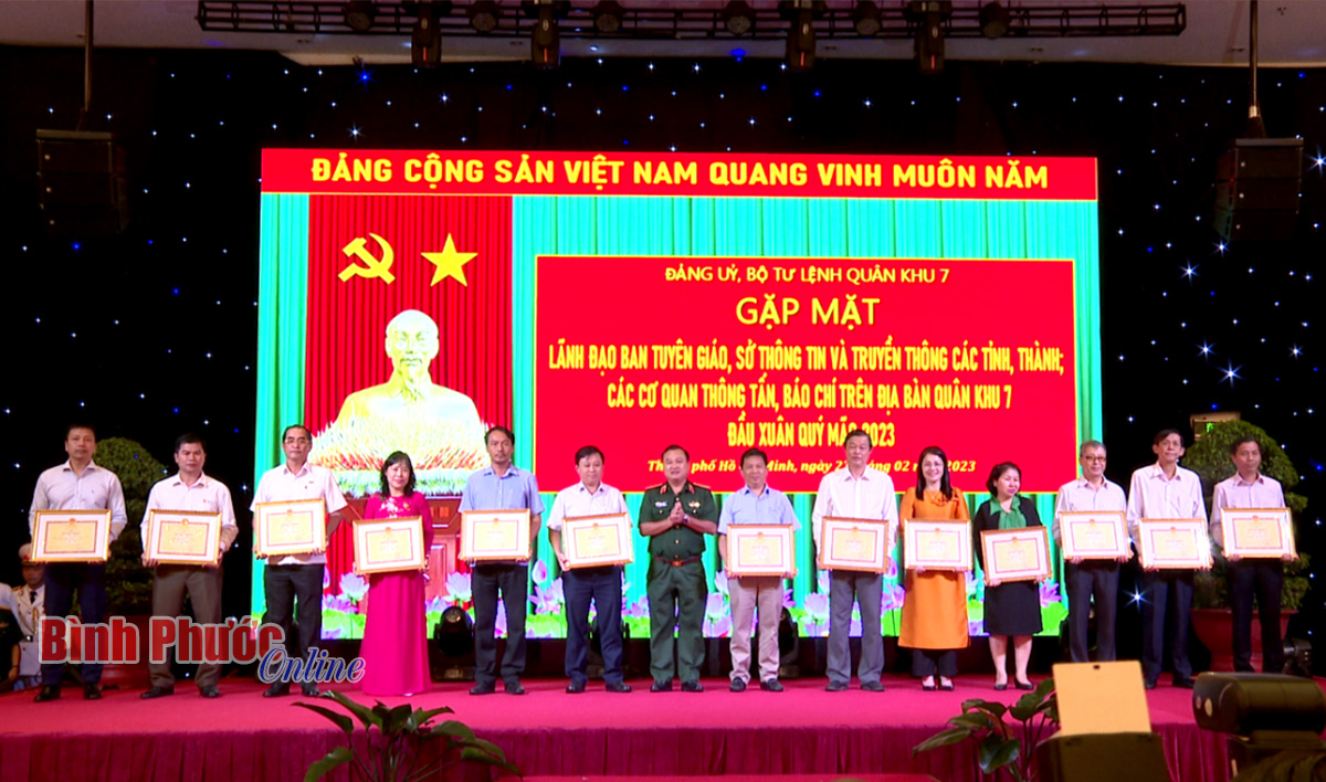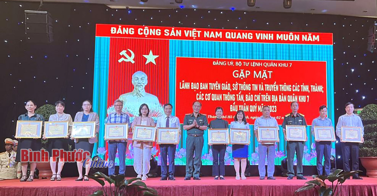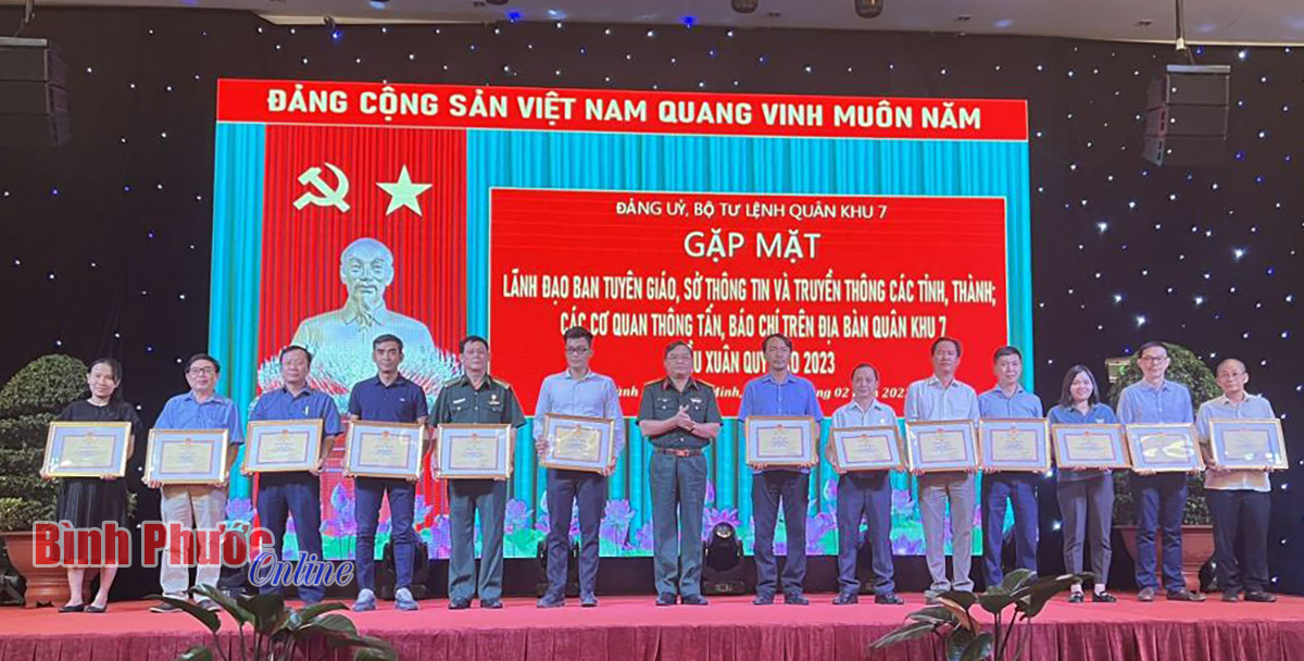 Dịp này, Chính ủy Quân khu 7 đã tặng bằng khen cho 35 tập thể và 55 cá nhân có thành tích tiêu biểu trong phối hợp tuyên truyền về xây dựng nền quốc phòng toàn dân và hoạt động của LLVT Quân khu năm 2022. Trong đó, Phòng Chuyên mục - Chuyên đề và Phó Giám đốc - Phó Tổng biên tập Đài Phát thanh - Truyền hình và Báo Bình Phước (BPTV) Phan Văn Thảo; Phòng Tuyên truyền - Tổng hợp và bà Nguyễn Thị Hồng Dương, Phó Trưởng phòng Thông tin - Khoa giáo, Ban Tuyên giáo Tỉnh ủy Bình Phước được Chính ủy Quân khu 7 tặng bằng khen.