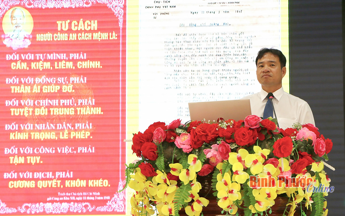 Phát biểu khai mạc hội nghị, Đại tá Nguyễn Huy Hải nhấn mạnh: Việc tổ chức học tập, thực hiện nghiêm túc Sáu điều Bác Hồ dạy là thể hiện tình cảm sâu sắc của lực lượng Công an nhân dân (CAND) đối với Chủ tịch Hồ Chí Minh; thể hiện sự trung thành tuyệt đối với Đảng, hết lòng, hết sức phụng sự Tổ quốc, phục vụ nhân dân, vì cuộc sống bình yên và hạnh phúc của nhân dân. Thực hiện Sáu điều Bác Hồ dạy CAND, Công an tỉnh Bình Phước quyết tâm xây dựng lực lượng trong sạch, vững mạnh, chính quy, tinh nhuệ, hiện đại…