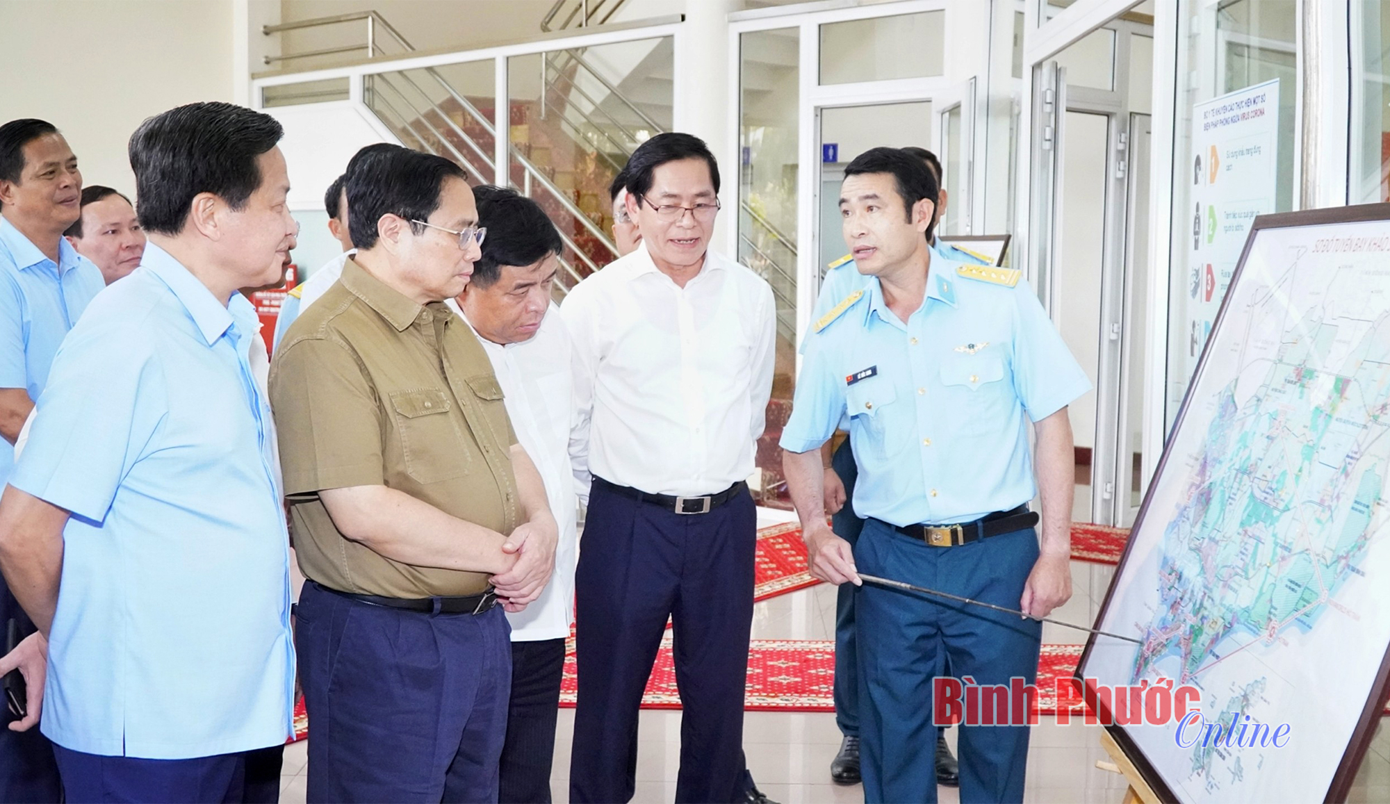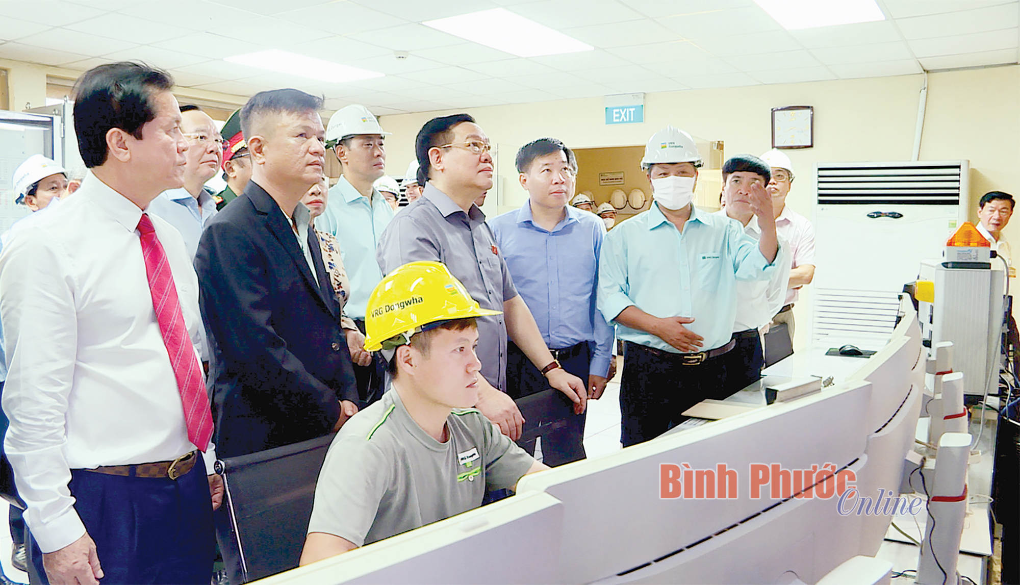 Ủy viên Bộ Chính trị, Chủ tịch Quốc hội Vương Đình Huệ; Ủy viên Trung ương Đảng, Bí thư Tỉnh ủy Bình Phước Nguyễn Mạnh Cường cùng đoàn công tác tham quan dây chuyền sản xuất của Công ty cổ phần gỗ MDF VRG Dongwha, Khu công nghiệp Minh Hưng III (thị xã Chơn Thành)