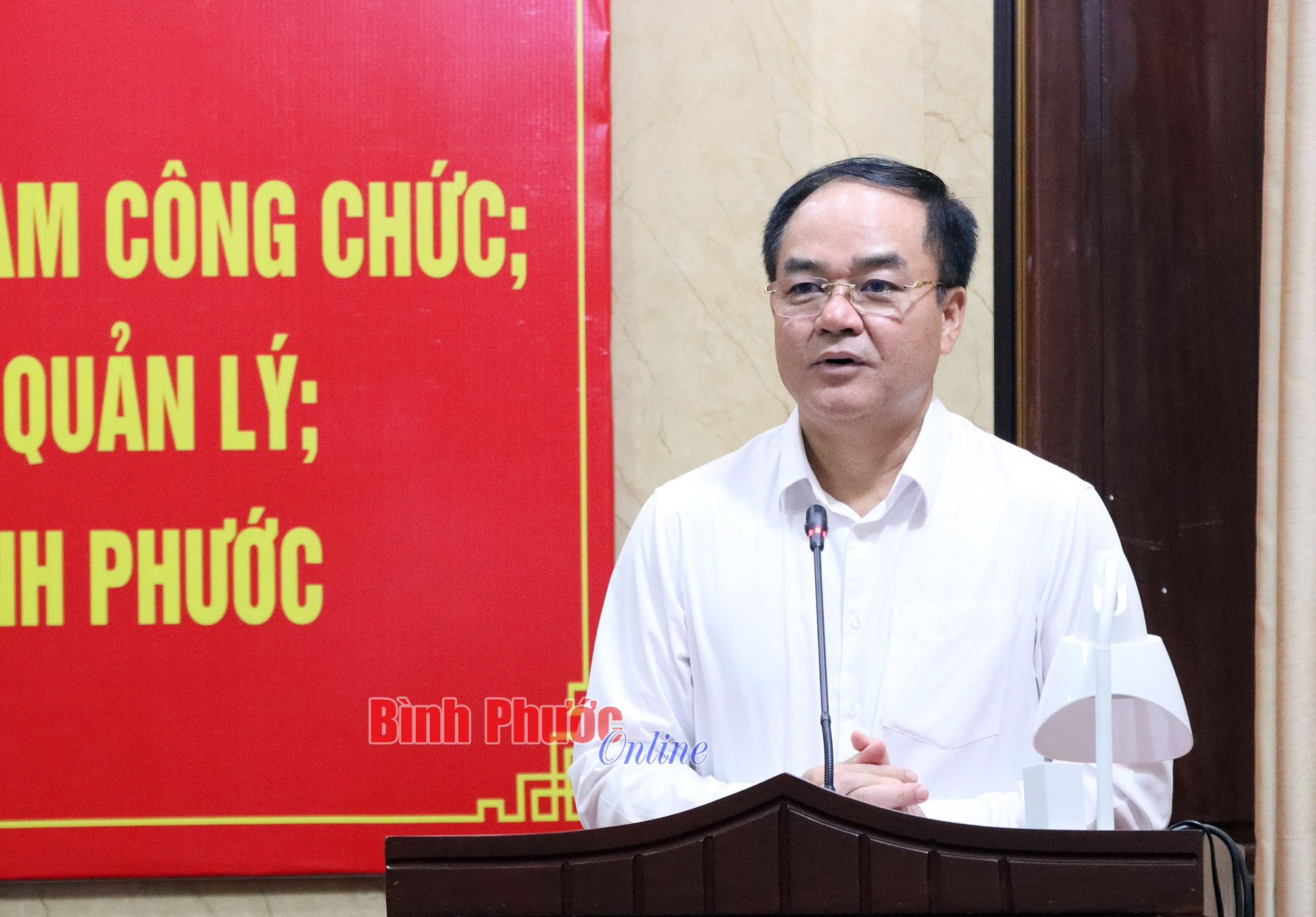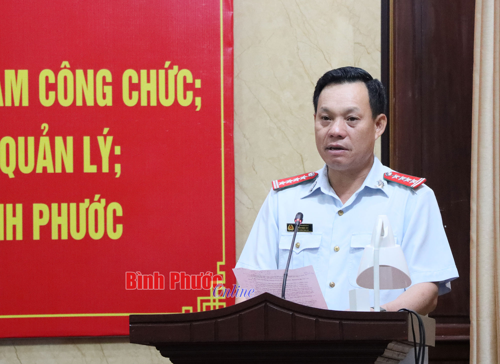 Phó Chánh thanh tra Bộ Nội vụ, Trưởng đoàn thanh tra Trần Ngọc Huy công bố quyết định thanh tra của Bộ Nội vụ đối với UBND tỉnh Bình Phước