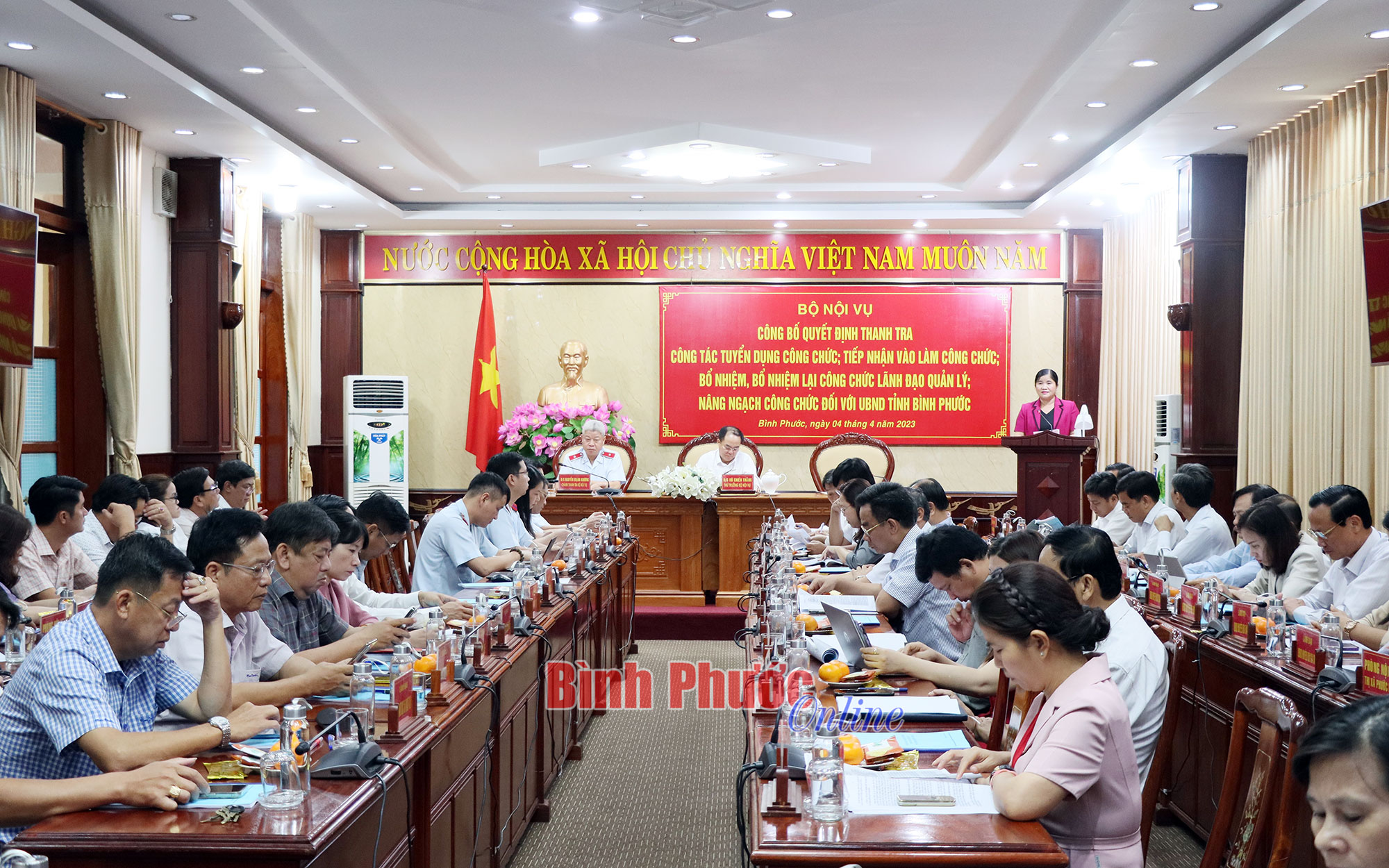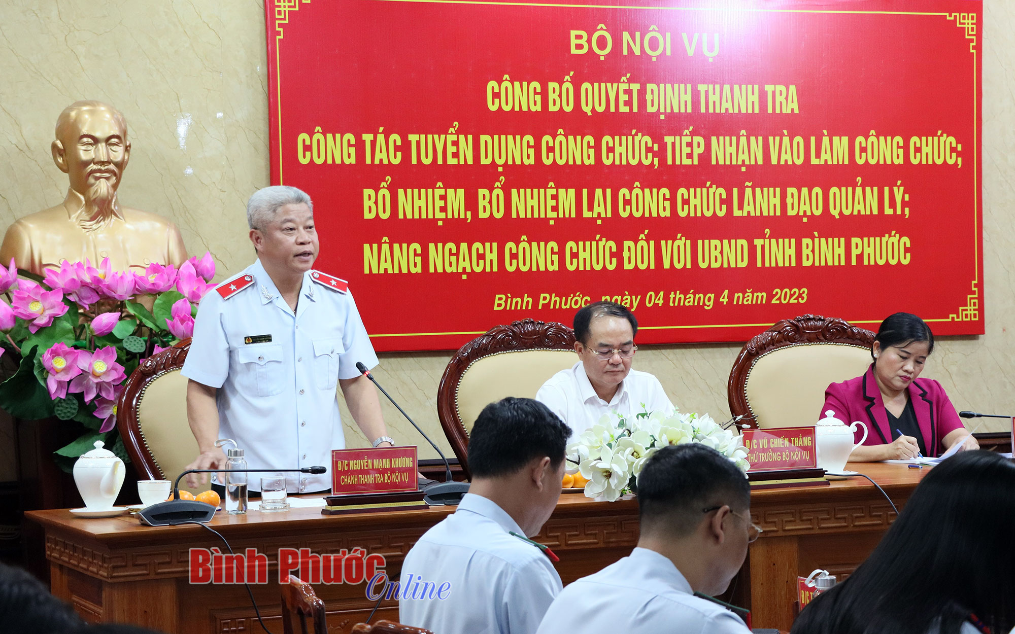 Chánh Thanh tra Bộ Nội vụ Nguyễn Mạnh Khương; Thứ trưởng Bộ Nội vụ Vũ Chiến Thắng; Phó Bí thư Tỉnh ủy, Chủ tịch UBND tỉnh Bình Phước Trần Tuệ Hiền chủ trì buổi công bố.
