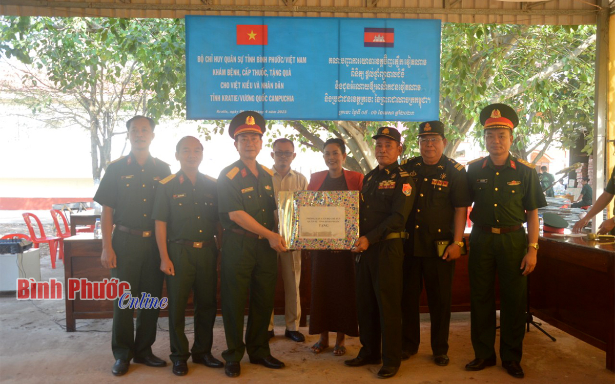 Dịp này, nhân tết cổ truyền Chôl Chnăm Thmây của đất nước Campuchia, Bộ CHQS tỉnh Bình Phước đã tặng 400 suất quà cho hộ nghèo của 2 huyện, gồm các nhu yếu phẩm, với tổng trị giá 200 triệu đồng và 70 triệu đồng tiền thuốc cấp miễn phí cho người dân.