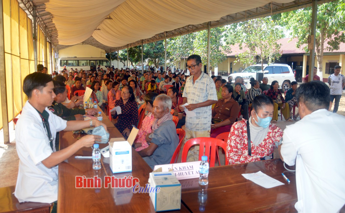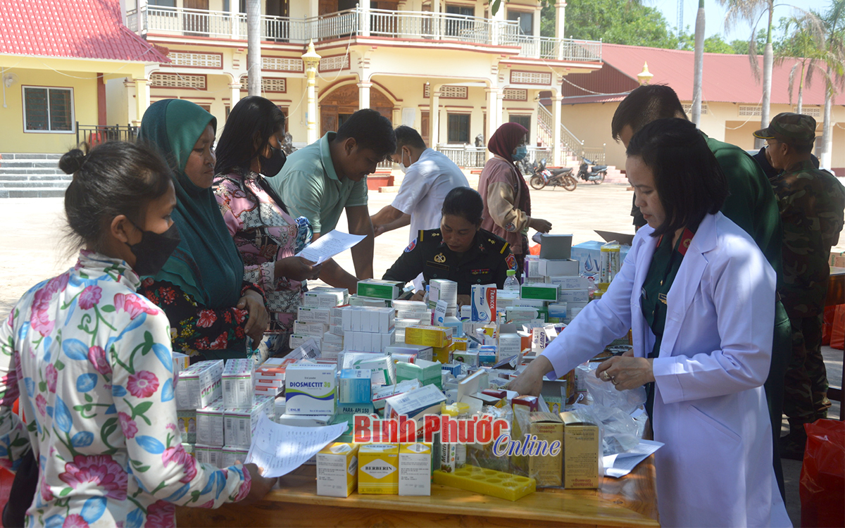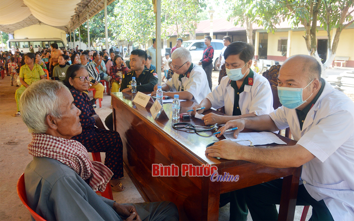 Tại Tiểu đoàn 1 và Tiểu đoàn 4, Tiểu khu quân sự tỉnh Kratie, người dân địa phương đã được các y, bác sĩ Bộ CHQS tỉnh Bình Phước khám bệnh, cấp thuốc, tuyên truyền, hướng dẫn cách phòng chống dịch bệnh, chăm sóc sức khỏe trong mùa nắng nóng và hậu Covid-19.
