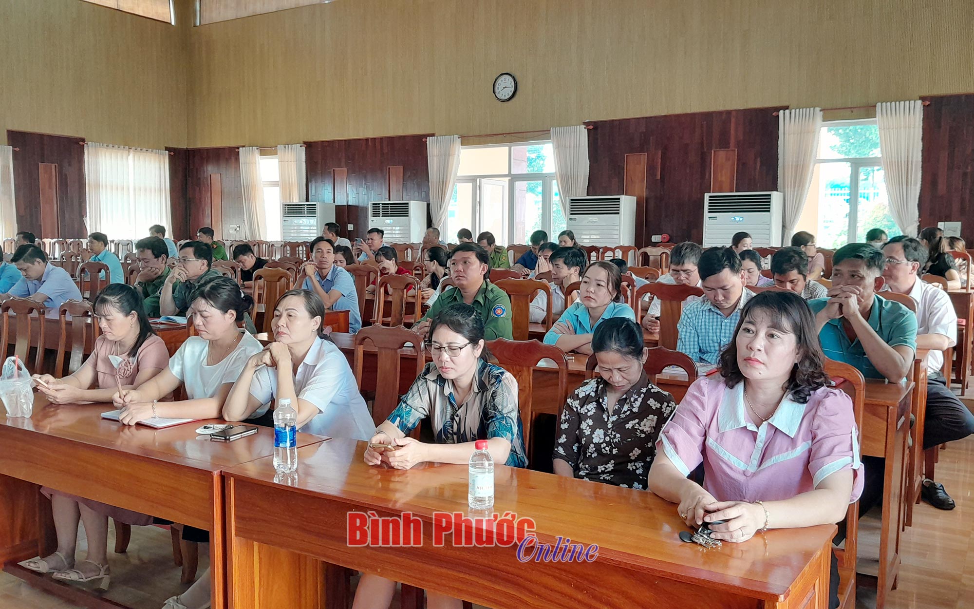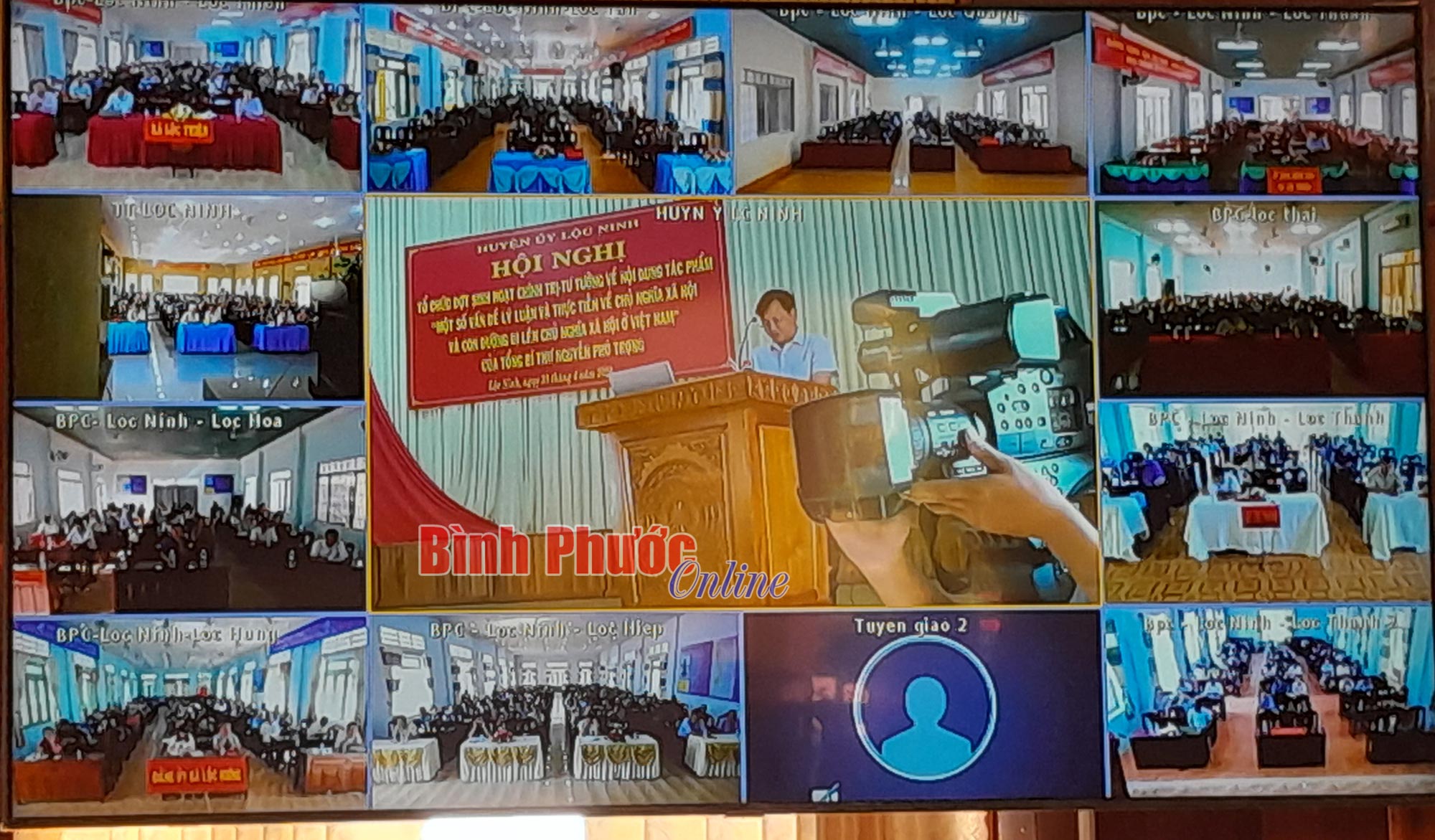 Cán bộ chủ chốt và các đảng viên huyện Lộc Ninh tham dự hội nghị tại điểm cầu chính