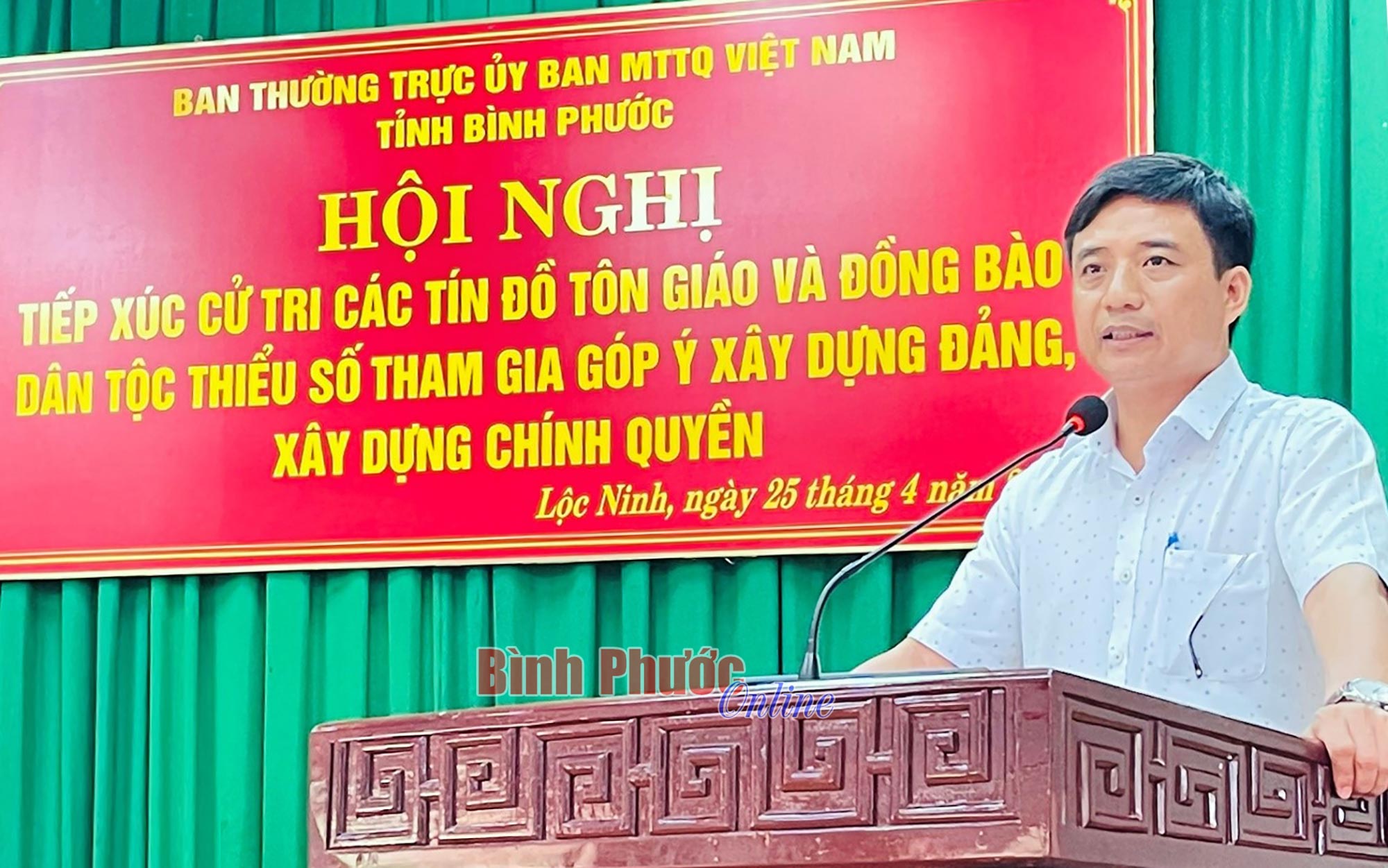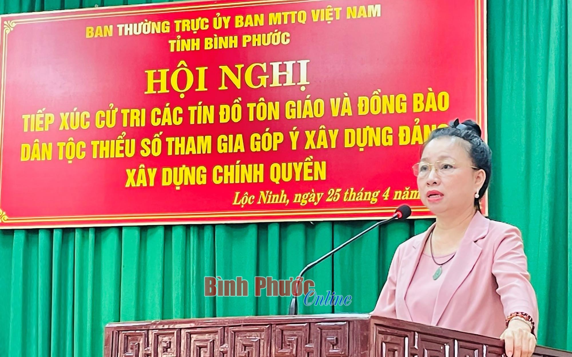 Tại hội nghị, Ủy viên Ban Thường vụ, Trưởng ban Dân vận Tỉnh ủy, Chủ tịch UBMTTQVN tỉnh Lê Thị Xuân Trang nhấn mạnh, đây là địa phương thứ 2 UBMTTQVN tỉnh tổ chức tiếp xúc cử tri các tín đồ tôn giáo và đồng bào dân tộc thiểu số với mong muốn phát huy hơn nữa vai trò đại diện của các cá nhân là chức sắc, chức việc tiêu biểu các tôn giáo, người có uy tín trong đồng bào dân tộc thiểu số tham gia góp ý xây dựng Đảng, chính quyền.