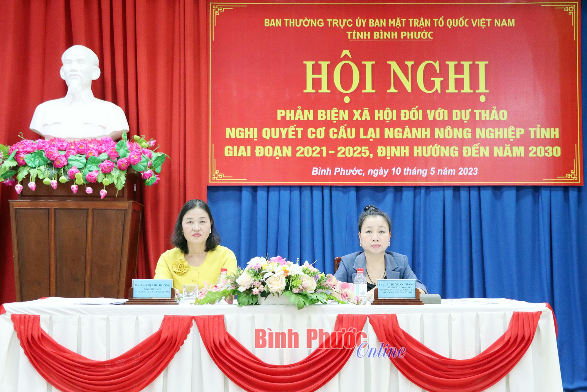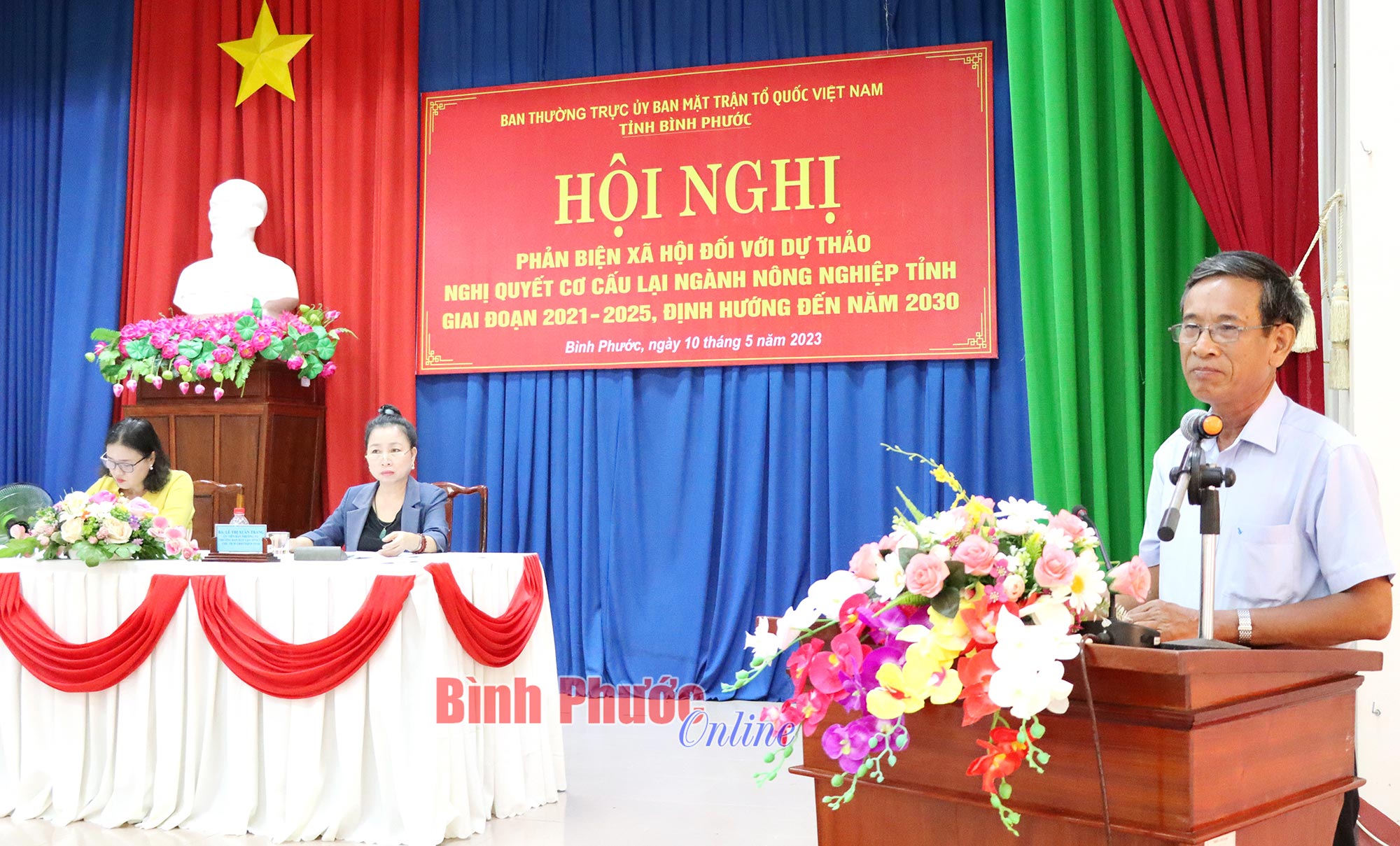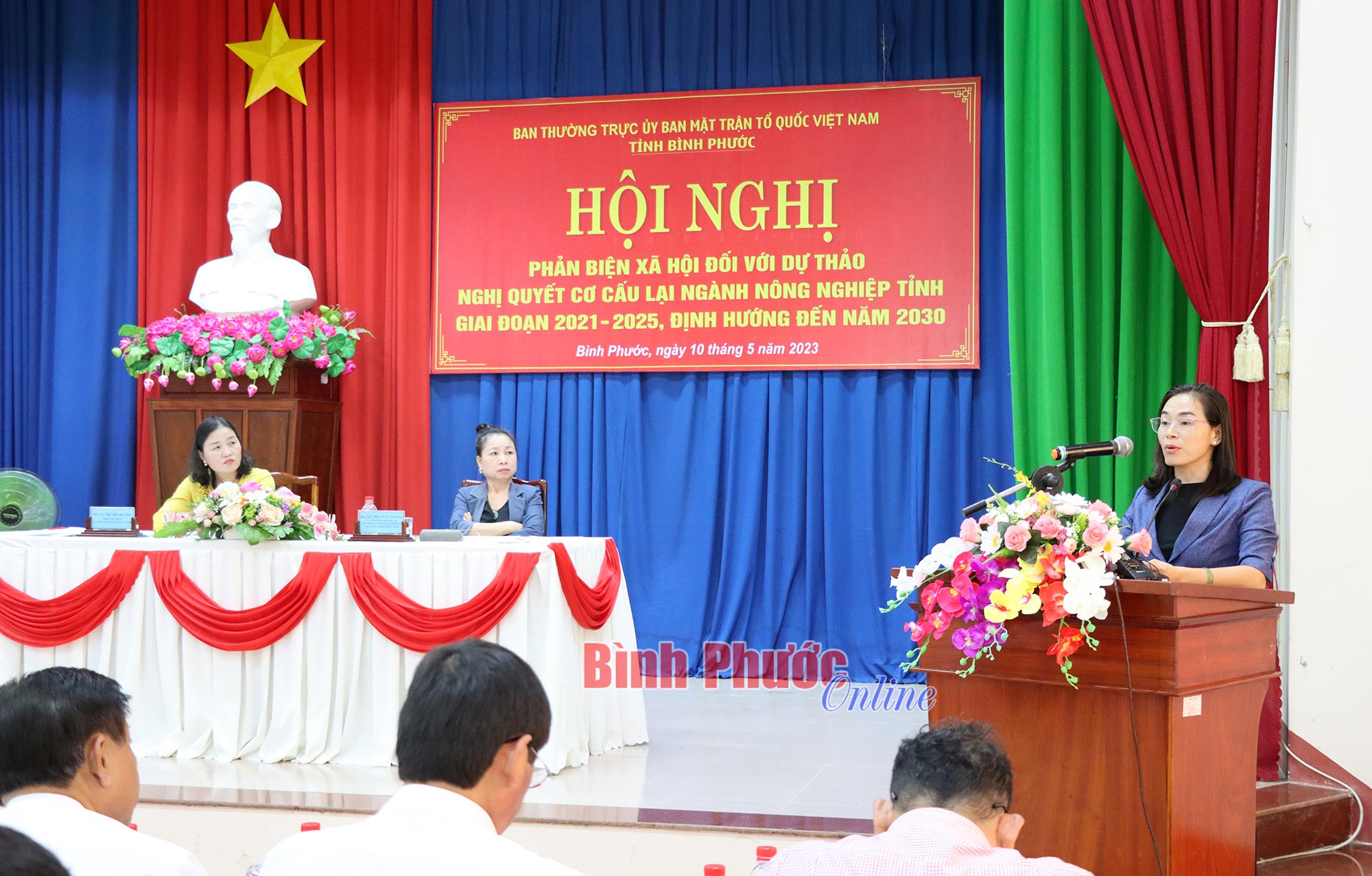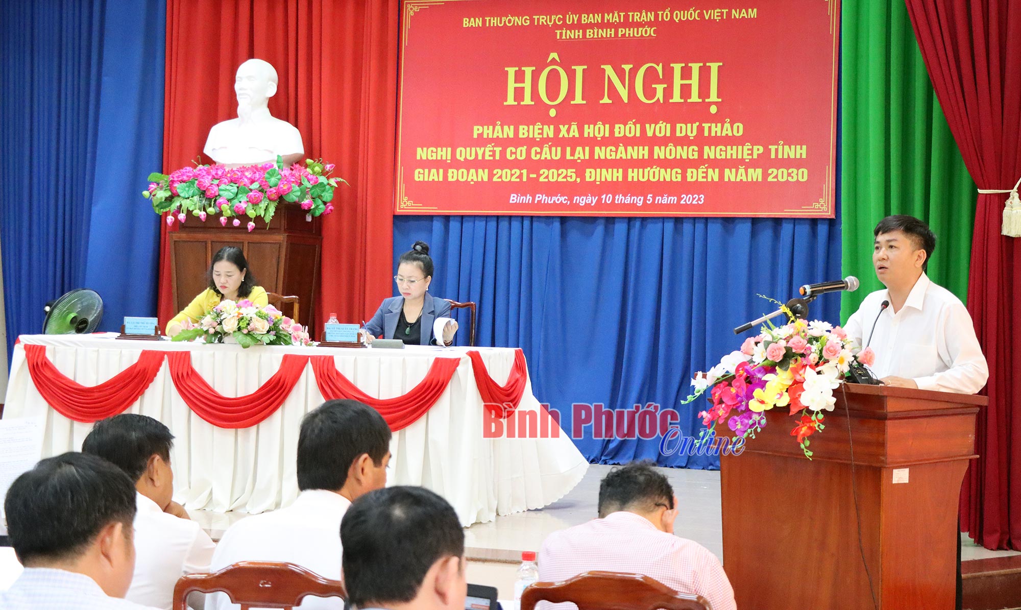 Tại hội nghị, đa số các ý kiến của đại biểu tập trung vào cơ sở chính trị, căn cứ pháp lý, tính hợp hiến, hợp pháp của việc ban hành nghị quyết; đánh giá, nhận định về tình hình nông nghiệp Bình Phước; quan điểm, mục tiêu của nghị quyết; nội dung thực hiện tái cơ cấu lại ngành nông nghiệp; nâng cao giá trị gia tăng, ứng dụng công nghệ thông tin, chuyển đổi số trong lĩnh vực nông nghiệp; các giải pháp thực hiện tái cơ cấu ngành nông nghiệp; việc tổ chức thực hiện việc tái cơ cấu ngành nông nghiệp.
