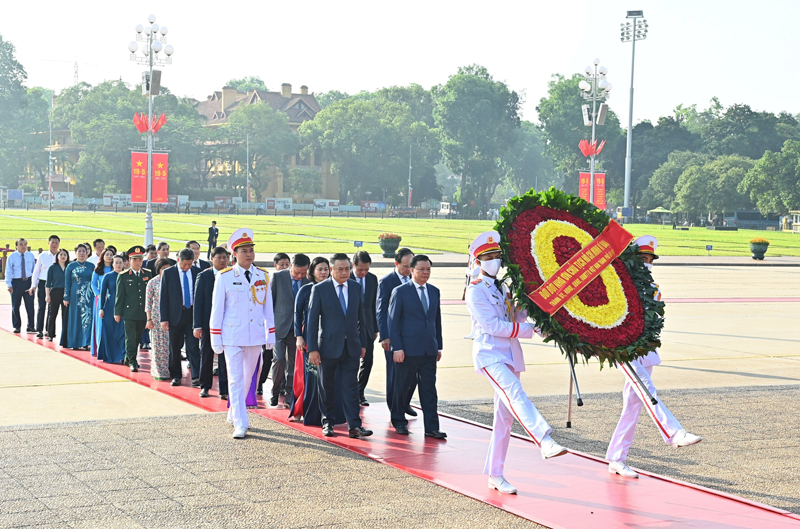 Sáng cùng ngày, Đoàn đại biểu Thành ủy, HĐND, UBND, Ủy ban Mặt trận Tổ quốc Việt Nam thành phố Hà Nội do đồng chí Đinh Tiến Dũng, Ủy viên Bộ Chính trị, Bí thư Thành ủy dẫn đầu đã vào Lăng viếng Chủ tịch Hồ Chí Minh.