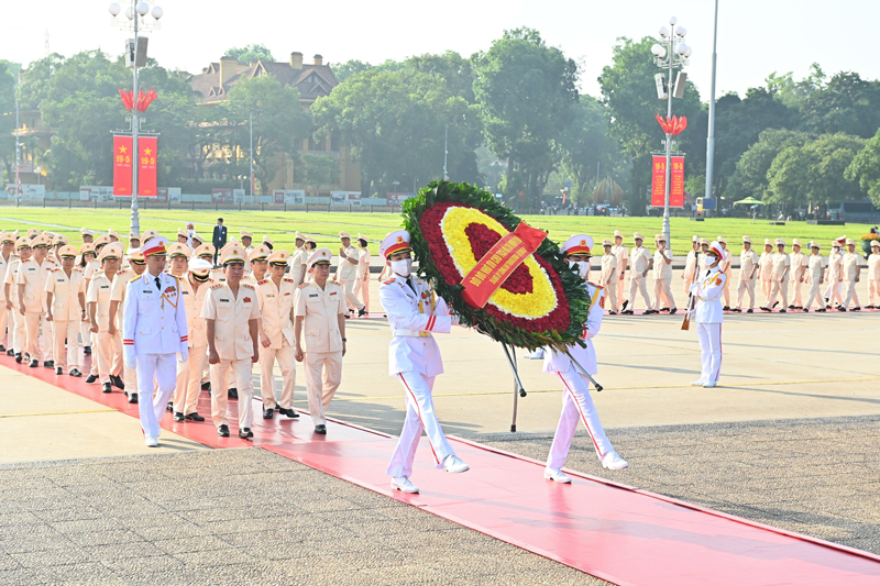 Cũng trong buổi sáng, các đoàn: Quân ủy Trung ương và Bộ Quốc phòng; Đảng ủy Công an Trung ương và Bộ Công an cùng đông đảo nhân dân đã vào Lăng viếng Chủ tịch Hồ Chí Minh; đặt vòng hoa tưởng nhớ, tri ân các anh hùng liệt sĩ tại Đài tưởng niệm các Anh hùng liệt sĩ.