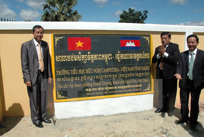 Trường Hữu nghị Campuchia-Việt Nam tỉnh Takeo được xây dựng trên tổng diện tích hơn 5.000m2 tại ấp Snao, phường Rokar Khnong, thành phố Daun Keo bao gồm các hạng mục xây dựng như trường lớp, khu vệ sinh, ao cá, hàng rào... cùng các trang thiết bị phục vụ công tác giảng dạy. Hiện nay, trường đã nhận 70 học sinh đăng ký theo học các chương trình giáo dục bằng hai thứ tiếng Khmer và Việt Nam.