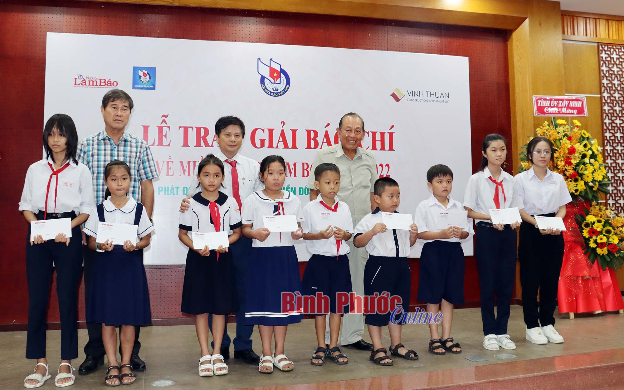 Trước khi vinh danh các tác phẩm, tác giả và nhóm tác giả đoạt giải, nguyên Ủy viên Bộ Chính trị, nguyên Phó Thủ tướng Thường trực Chính phủ Trương Hòa Bình đã trao 50 suất học bổng cho học sinh nghèo vượt khó khu vực biên giới tỉnh Tây Ninh, mỗi suất trị giá 2 triệu đồng.