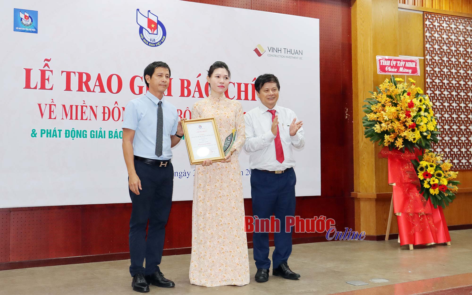Đại diện Ban tổ chức trao chứng nhận cho các tác phẩm đoạt giải khuyến khích của đơn vị Đài Phát thanh - Truyền hình và Báo Bình Phước
