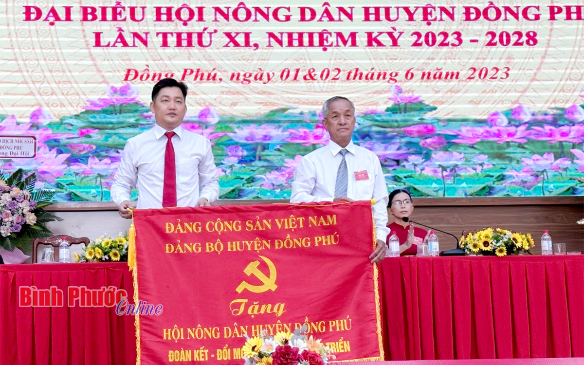 Bí thư Huyện ủy Đồng Phú Nguyễn Quốc Dũng tặng cờ cho Hội Nông dân huyện