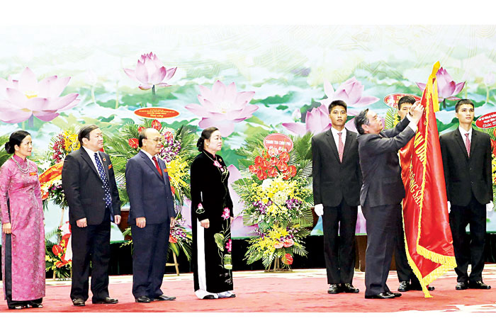Ủy viên Bộ Chính trị, Thường trực Ban Bí thư Lê Hồng Anh gắn Huân chương Hồ Chí Minh lên Cờ truyền thống của Ban Dân vận Trung ươngTổng Bí thư Nguyễn Phú Trọng, nguyên Tổng Bí thư Đỗ Mười, nguyên Tổng Bí thư Lê Khả Phiêu, Chủ tịch nước Trương Tấn Sang, Chủ tịch Ủy ban Trung ương Mặt trận Tổ quốc Việt Nam Nguyễn Thiện Nhân và nhiều đồng chí lãnh đạo, nguyên lãnh đạo Đảng và Nhà nước gửi lẵng hoa chúc mừng.