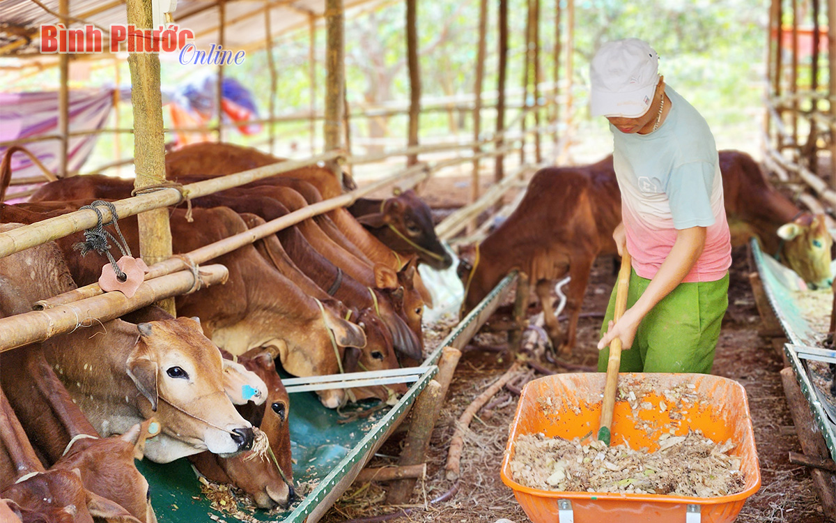 Với sự thay đổi nếp nghĩ, cách làm, đời sống nhân dân các xã biên giới tỉnh Bình Phước đã có nhiều đổi thay. Trong ảnh: Mô hình thí điểm nuôi bò tập trung để giảm công chăn thả, tăng hiệu quả kinh tế cho nhân dân biên giới xã Bù Gia Mập của Đoàn Kinh tế - Quốc phòng 778