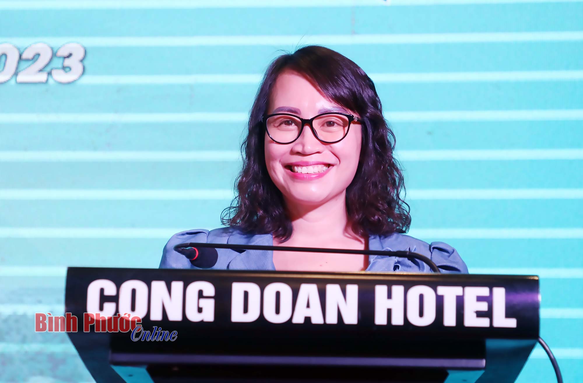 Giám đốc - Tổng Biên tập BPTV Nguyễn Thị Minh Nhâm phát biểu tại hội nghị