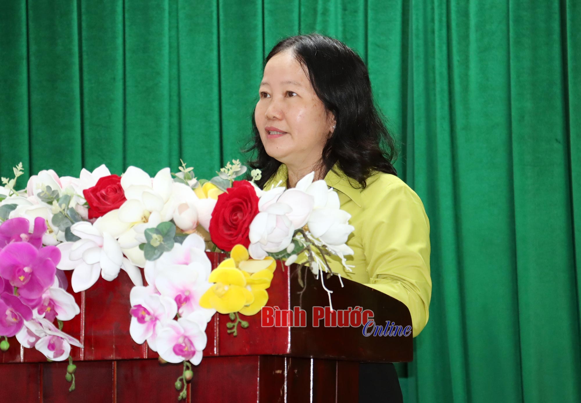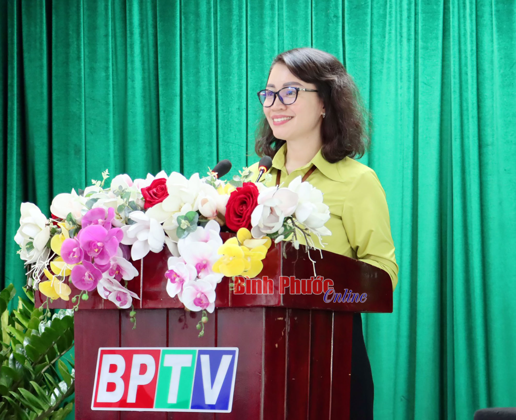 Trưởng phòng Văn nghệ - Giải trí - Quốc tế Phạm Thị Thanh Phương báo cáo kết quả Liên hoan nghiệp vụ báo chí tỉnh Bình Phước lần thứ I, năm 2023