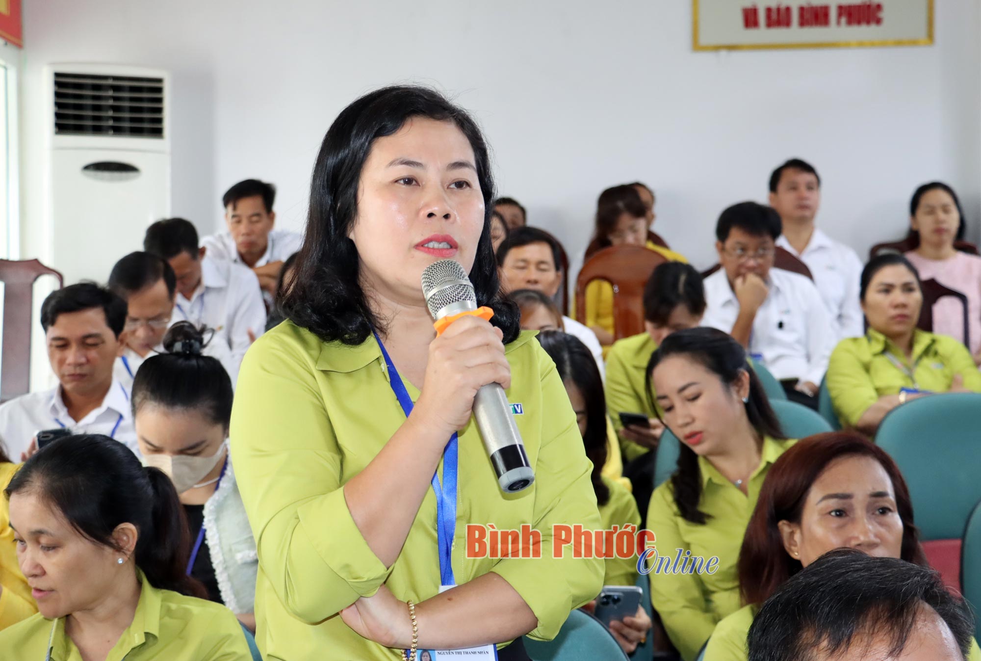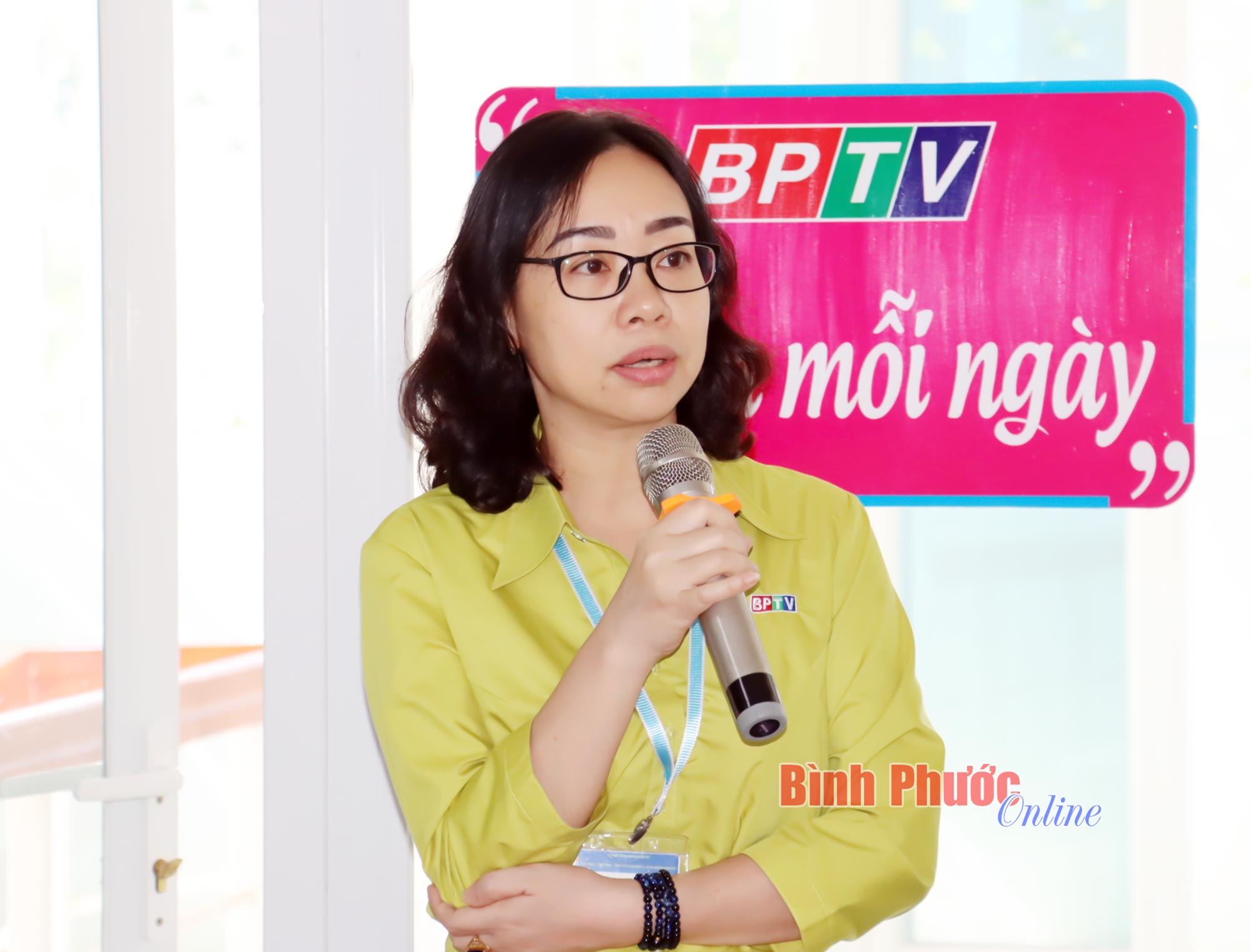 Tỉnh ủy viên, Giám đốc - Tổng Biên tập BPTV Nguyễn Thị Minh Nhâm phát biểu tại hội nghị