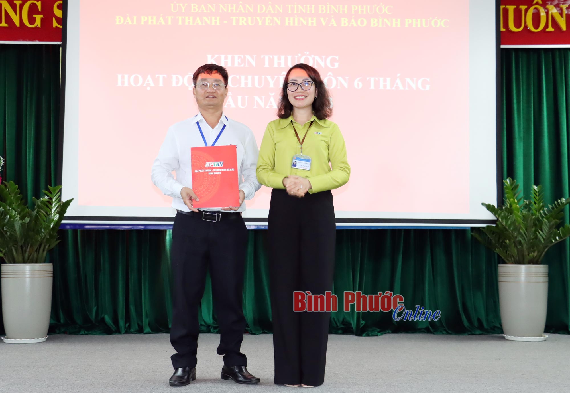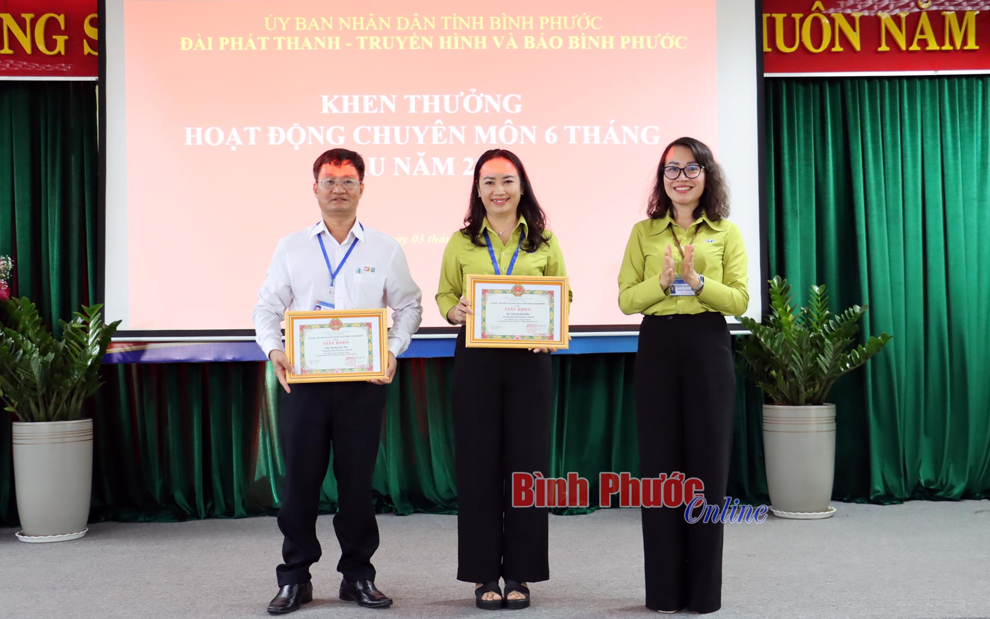 Tỉnh ủy viên, Giám đốc - Tổng Biên tập Nguyễn Thị Minh Nhâm trao giấy khen cho các cá nhân có thành tích xuất sắc trong 6 tháng đầu năm