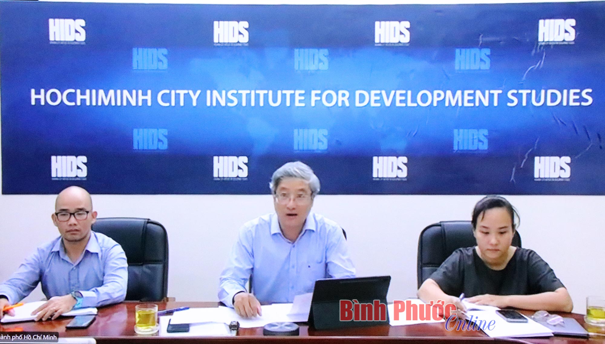 Phó Chủ tịch UBND tỉnh Trần Văn Mi và các thành viên Ban Hội nhập kinh tế quốc tế tỉnh dự tọa đàm tại điểm cầu Bình Phước