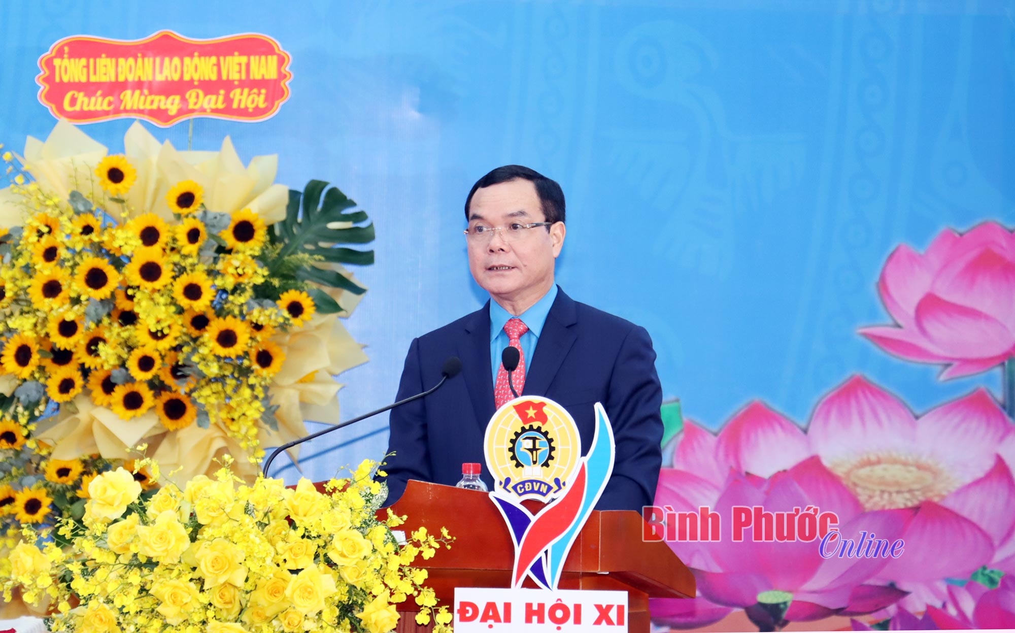 Tại đại hội, Chủ tịch Tổng LĐLĐ Việt Nam Nguyễn Đình Khang đánh giá cao kết quả đạt được cũng như sự thẳng thắn nhìn nhận hạn chế, nguyên nhân, bài học kinh nghiệm rút ra từ thực tiễn của phong trào CNVC-LĐ và hoạt động công đoàn Bình Phước thời gian qua.
