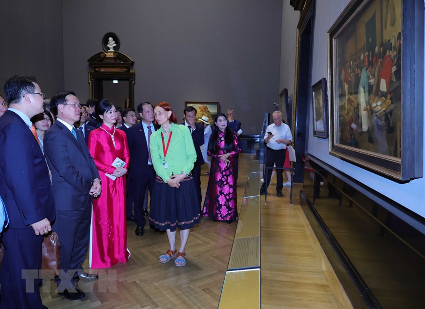 Tiếp tục chuyến thăm chính thức Cộng hòa Áo, chiều 23-7-2023 (theo giờ địa phương), tại Thủ đô Vienna, Chủ tịch nước Võ Văn Thưởng và Phu nhân thăm Bảo tàng Lịch sử Nghệ thuật Vienna. (Ảnh: Thống Nhất/TTXVN)