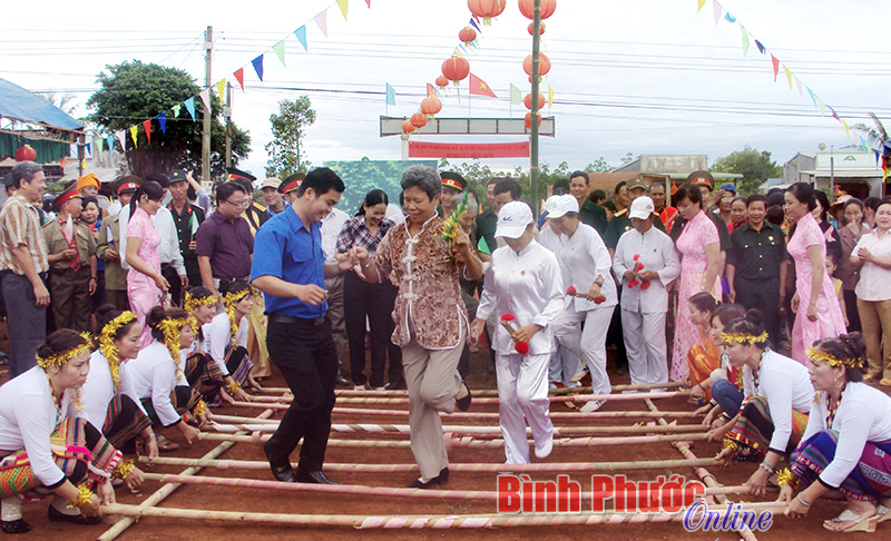 Người dân xã Thống Nhất (Bù Đăng) biểu diễn tiết mục múa sạp trong ngày hội đoàn kết toàn dân tộc - Ảnh: Minh Luận