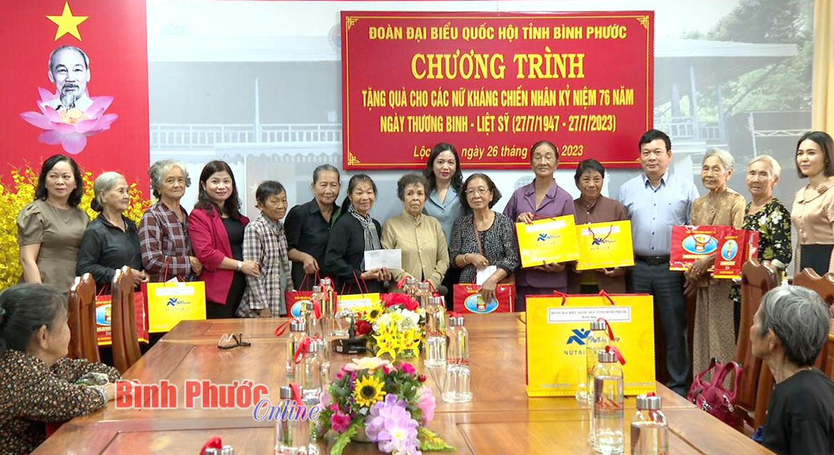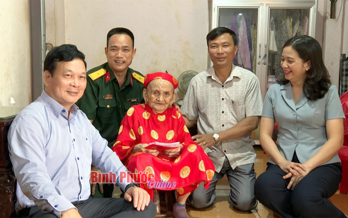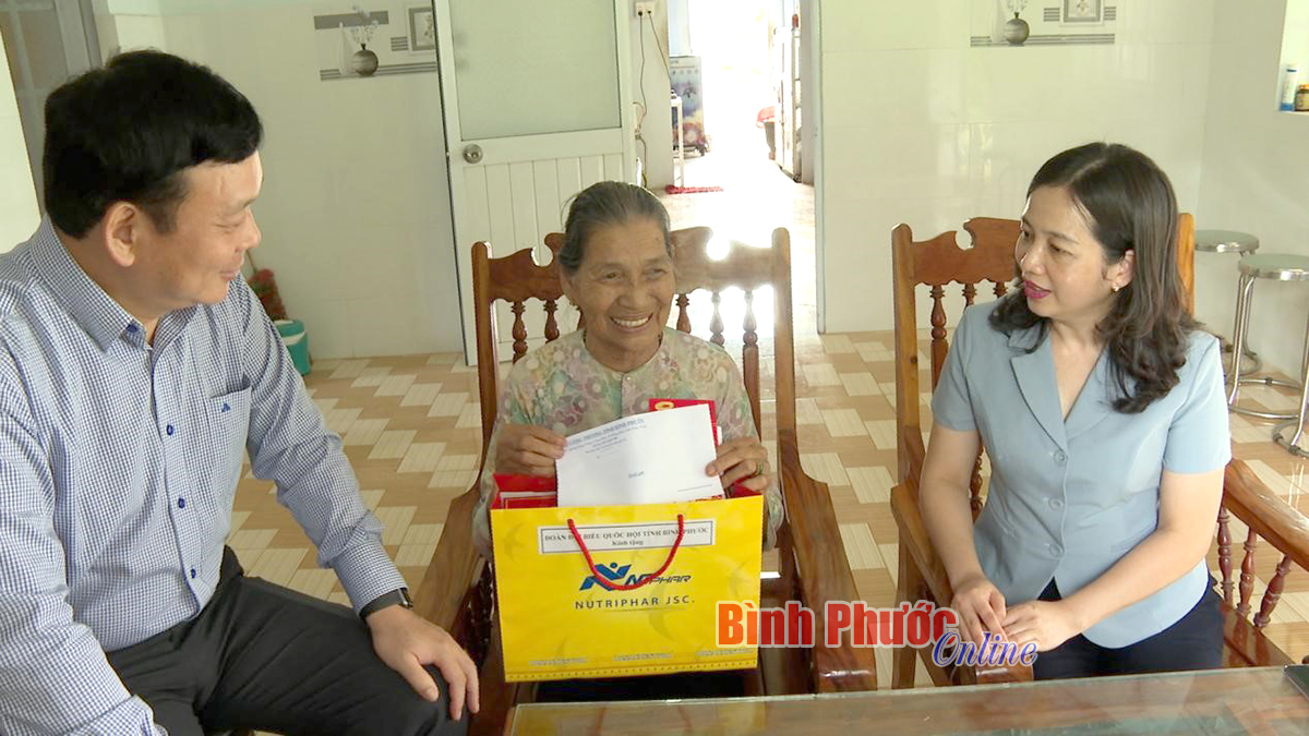 Đoàn sau đó đã đến thăm và tặng quà cho các nữ kháng khiến tiêu biểu của huyện Lộc Ninh và thị xã Bình Long.