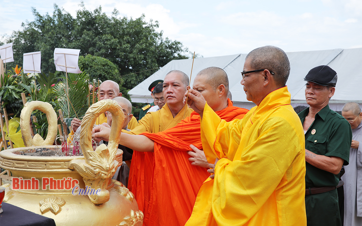 Ủy viên Ban Thường vụ, Trưởng ban Dân vận Tỉnh ủy, Chủ tịch Ủy ban MTTQVN tỉnh Lê Thị Xuân Trang; lãnh đạo các ban, sở, ngành, Thành ủy, UBND thành phố Đồng Xoài cùng đông đảo tăng, ni, phật tử dự lễ.