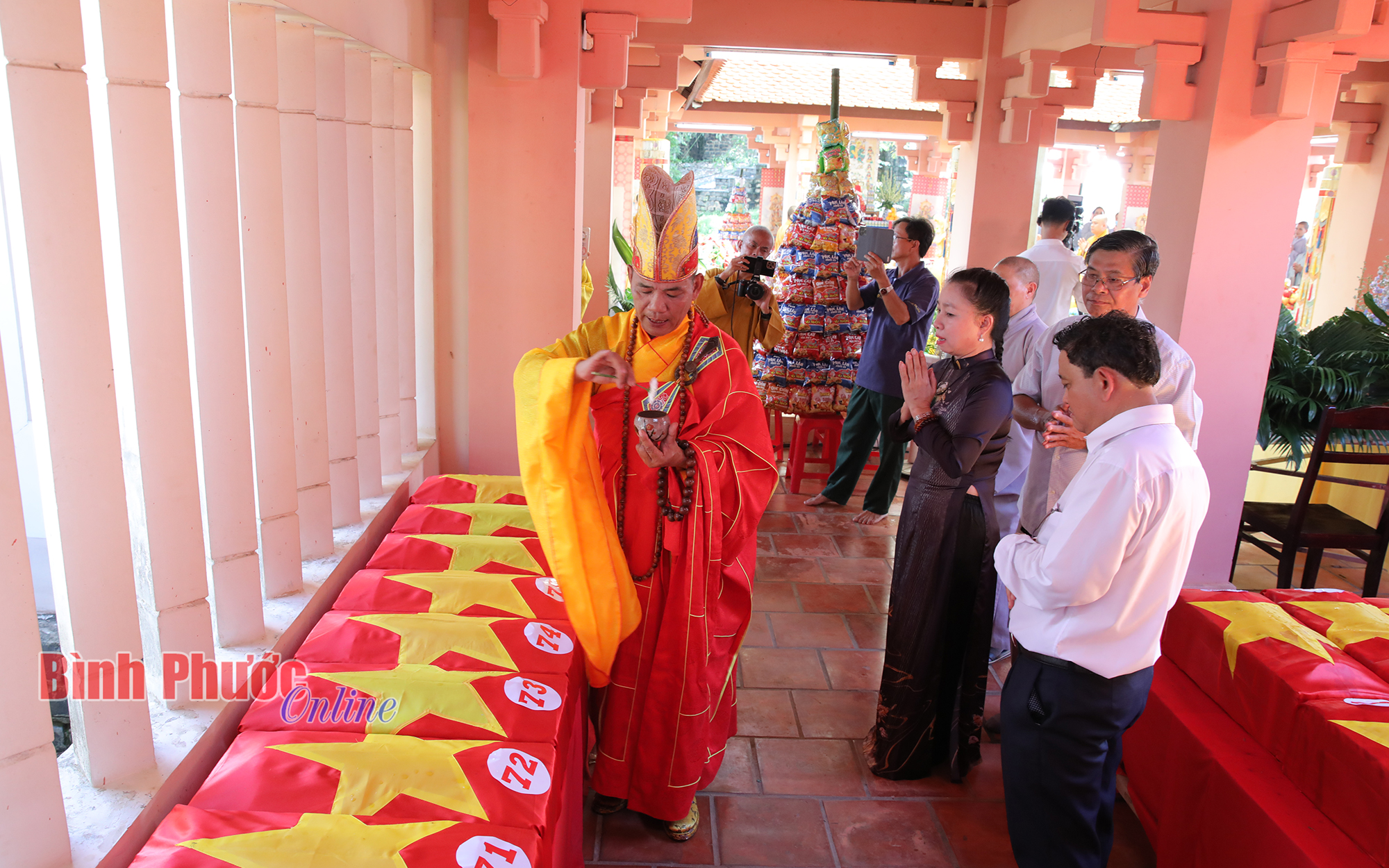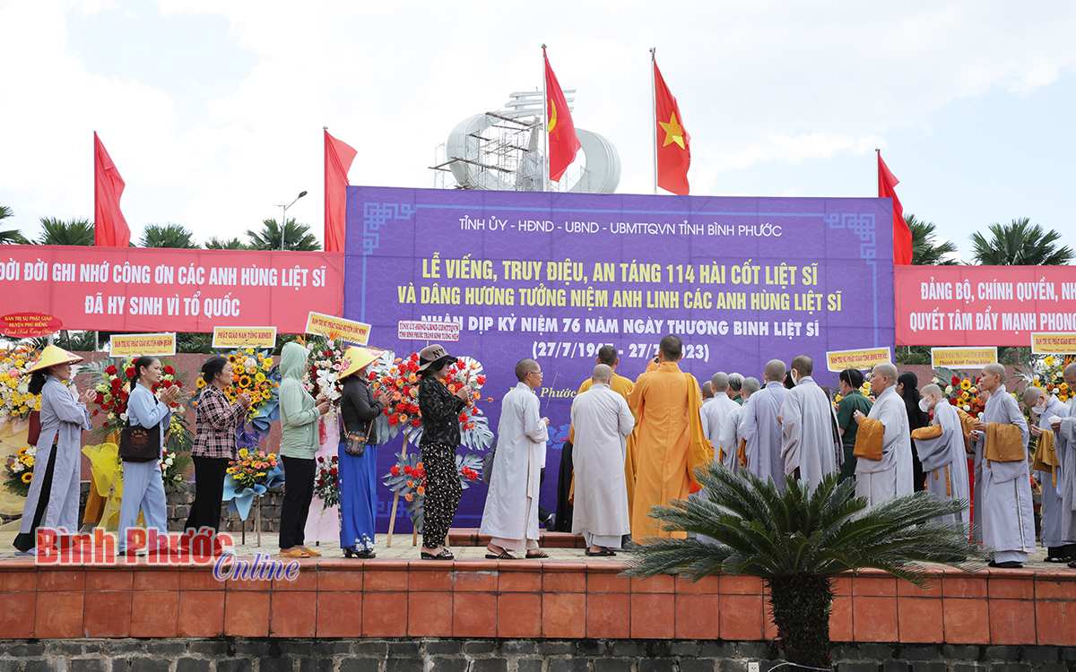 Trong không khí trang nghiêm, các đại biểu và phật tử đã thực hiện các nghi thức tưởng niệm anh hùng liệt sĩ; tỏ lòng thành kính, biết ơn tới các liệt sĩ đã anh dũng chiến đấu, hy sinh cho sự nghiệp giải phóng dân tộc và làm nhiệm vụ quốc tế cao cả…