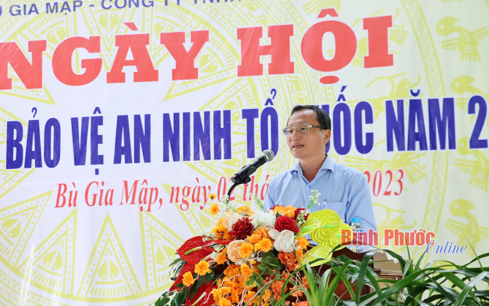 Dự ngày hội có: Đại tá Nguyễn Phương Đằng, Phó Giám đốc Công an tỉnh, Phó ban Chỉ đạo phòng chống tội phạm, tệ nạn xã hội và xây dựng phong trào Toàn dân bảo vệ an ninh Tổ quốc tỉnh; Tỉnh ủy viên, Giám đốc - Tổng Biên tập Đài Phát thanh - Truyền hình và Báo Bình Phước Nguyễn Thị Minh Nhâm; Phó Chủ tịch Ủy ban MTTQVN tỉnh Đỗ Đại Đồng; Tổng Giám đốc Công ty TNHH MTV Cao su Phú Riềng Lê Tiến Vượng cùng đại diện lãnh đạo các sở, ban, ngành, doanh nghiệp trên địa bàn tỉnh và đông đảo người dân trên địa bàn huyện Bù Gia Mập.