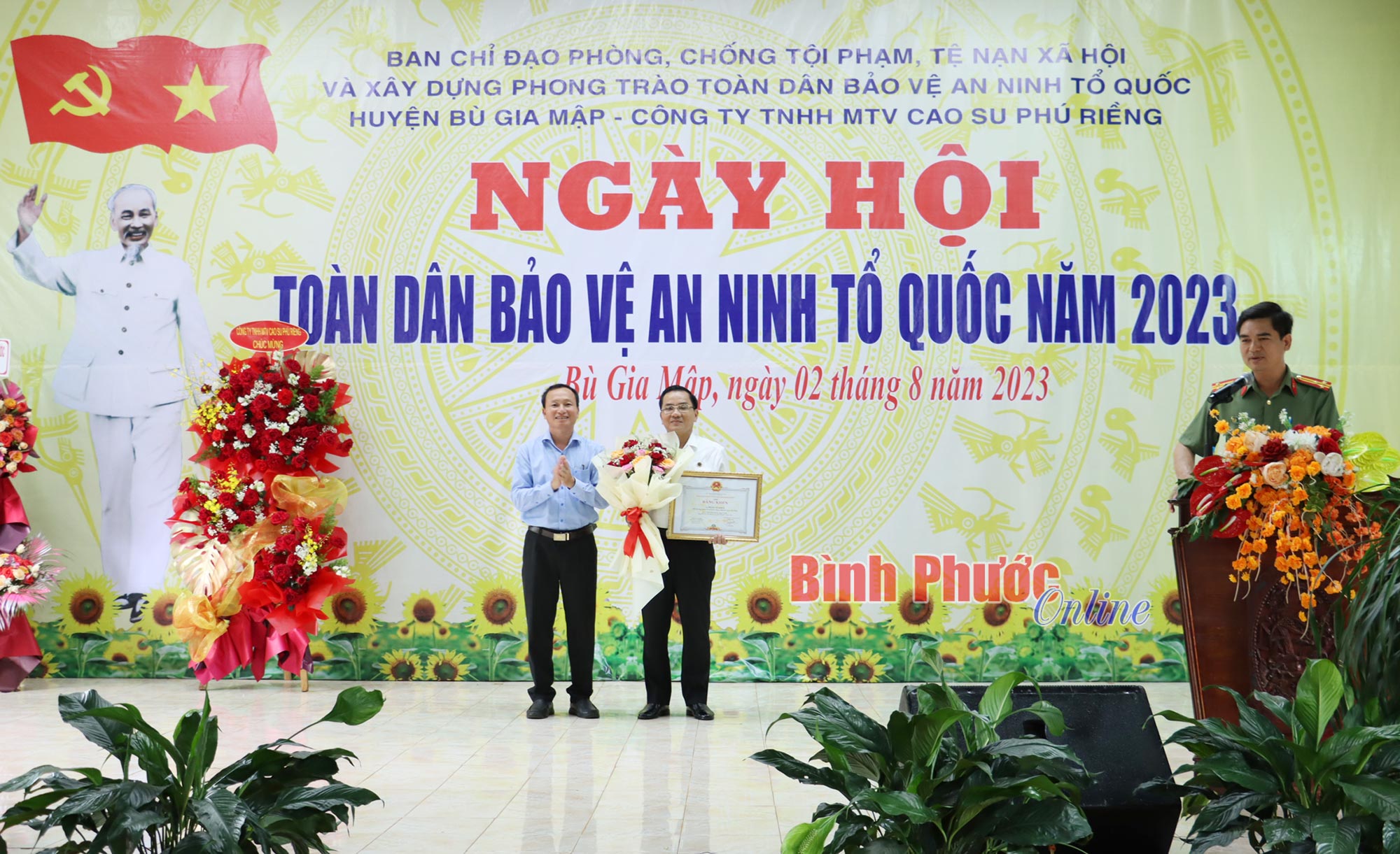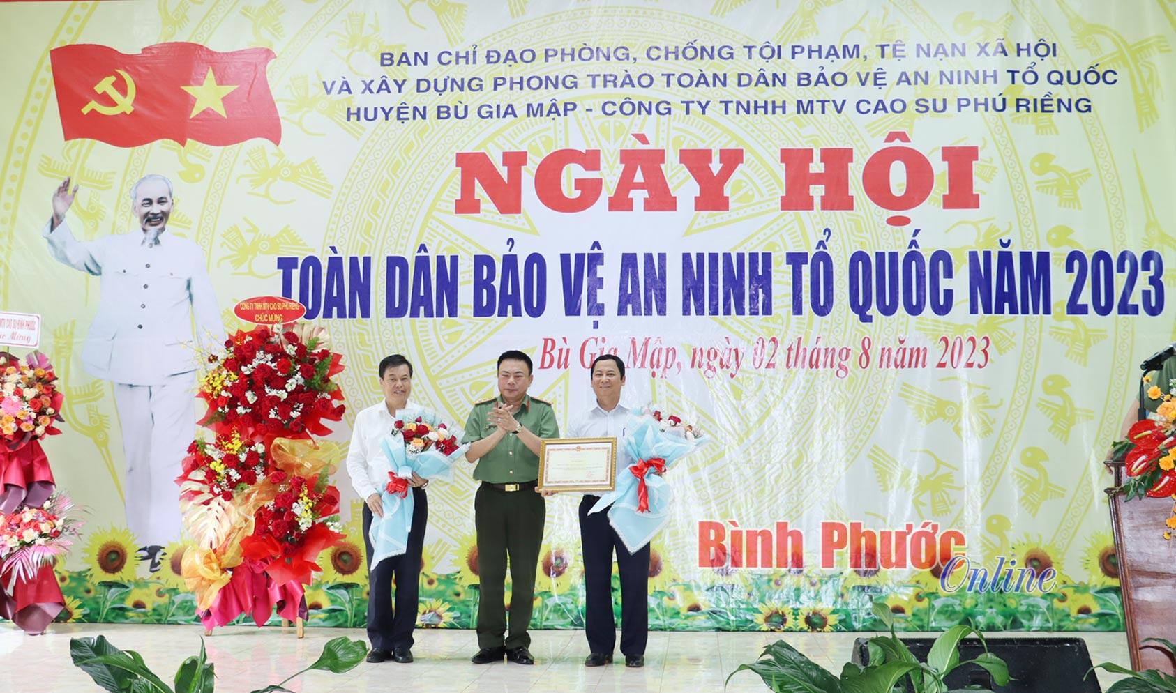 Dịp này, 7 cá nhân và tập thể thuộc Công ty TNHH MTV Cao su Phú Riềng được tặng Kỷ niệm chương Bảo vệ an ninh Tổ quốc của Bộ Công an; 6 tập thể, nông trường và cá nhân được nhận Bằng khen của UBND tỉnh; 2 tập thể và cá nhân được Giám đốc Công an tỉnh tặng giấy khen có thành tích xuất sắc trong tổ chức ngày hội Toàn dân bảo vệ an ninh Tổ quốc năm 2023.