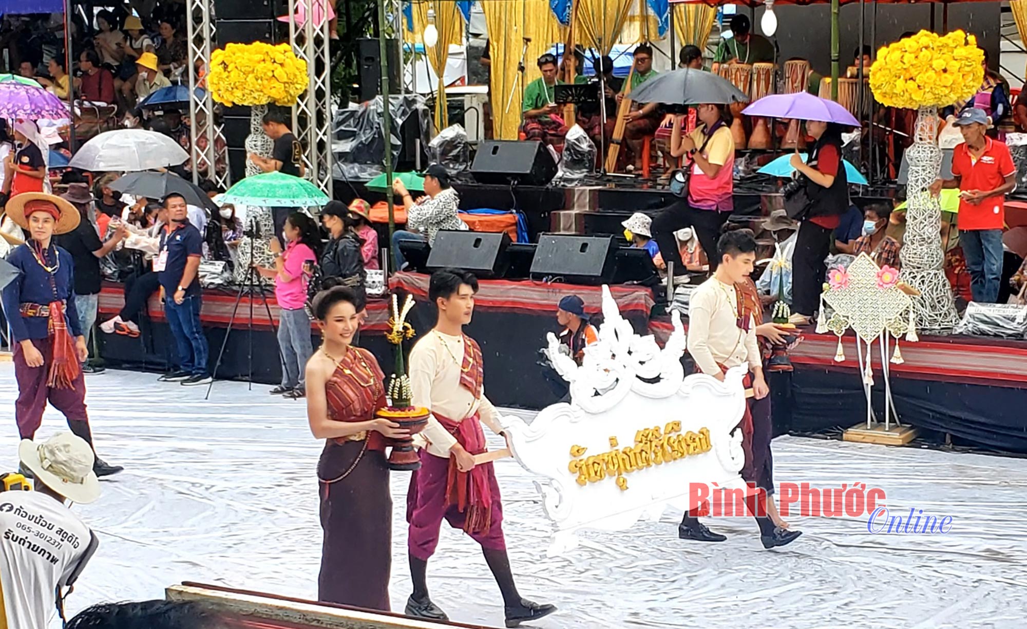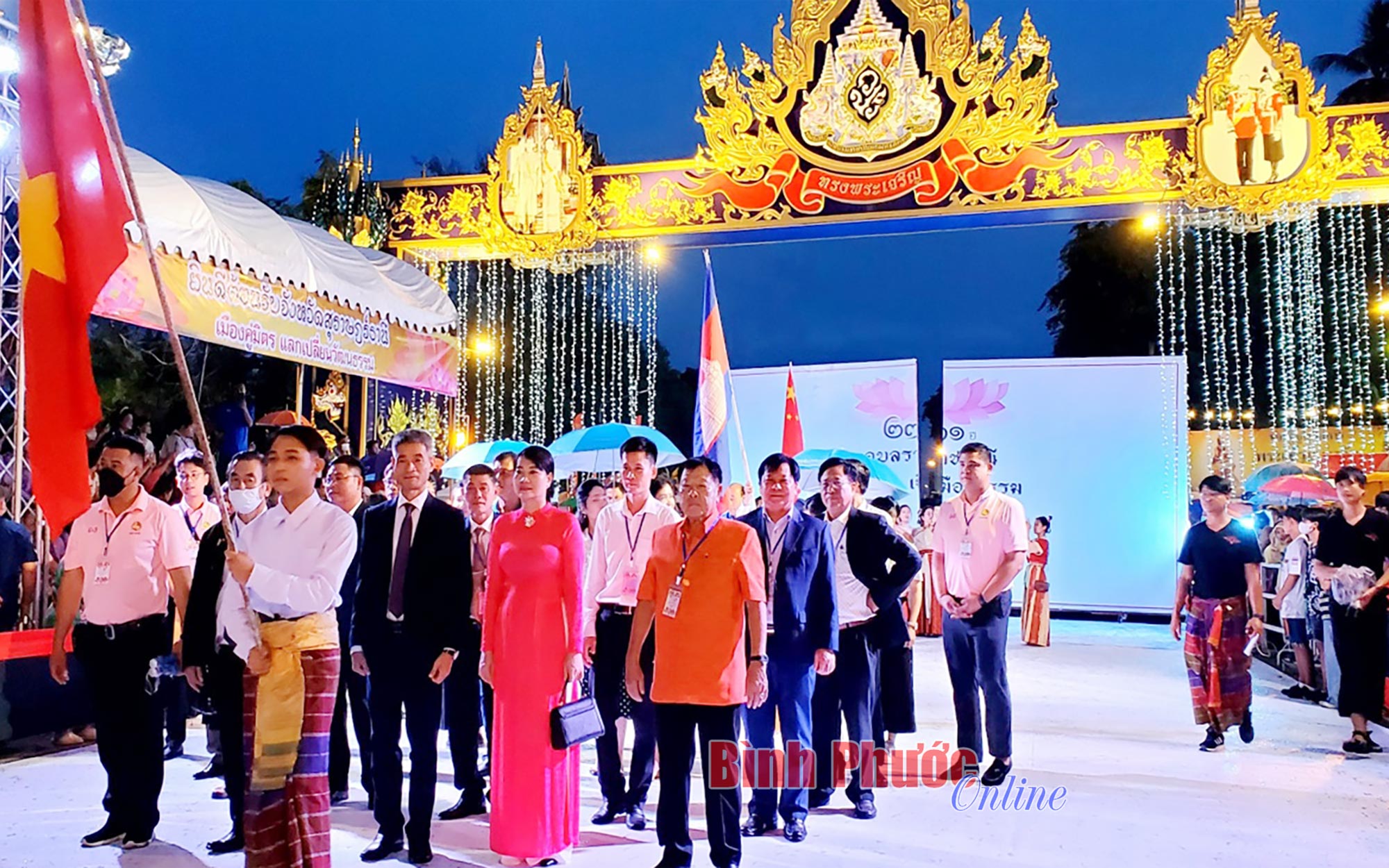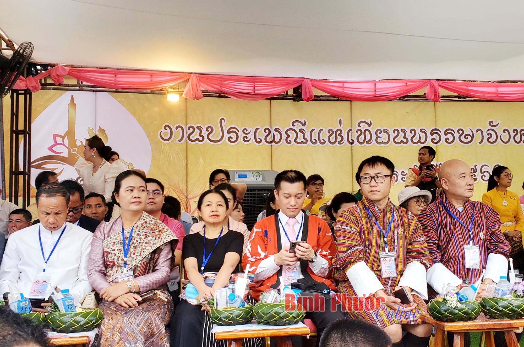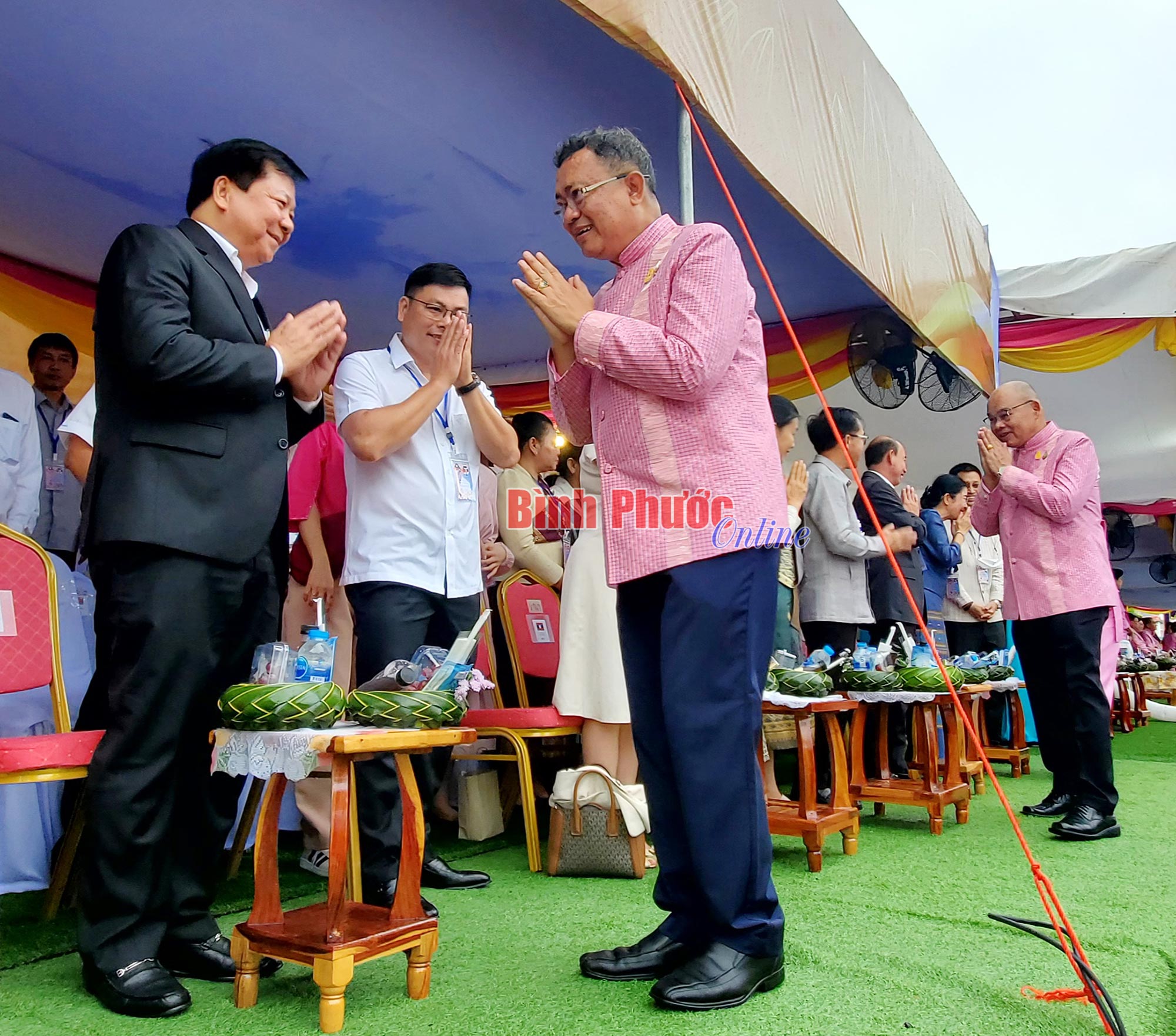 Ngài Chôn La Thi - Dằng Trồn, Tỉnh trưởng tỉnh Ubon Ratchathani, Trưởng ban tổ chức đến chào ông Trần Văn Mi, Phó Chủ tịch UBND tỉnh Bình Phước tại khán đài chương trình lễ hội