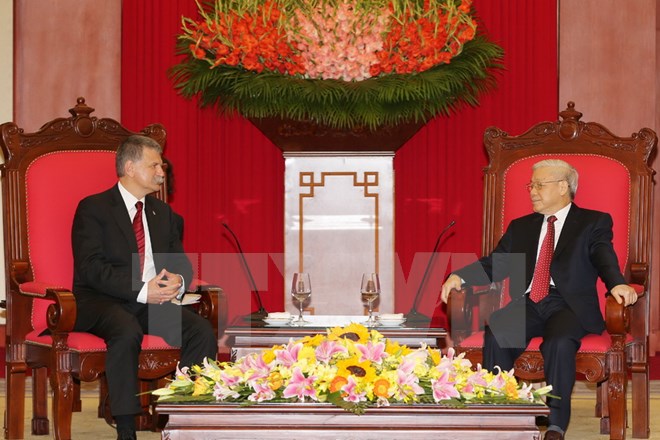 Tổng Bí thư đánh giá cao những nỗ lực của Hungary nhằm ổn định và phát triển kinh tế, hội nhập khu vực và quốc tế; bày tỏ vui mừng trước những bước phát triển tốt đẹp của quan hệ truyền thống giữa hai nước; cảm ơn Quốc hội, Chính phủ và nhân dân Hungary đã tạo điều kiện thuận lợi cho các công dân Việt Nam đang sinh sống, làm việc và học tập tại Hungary, tiếp tục làm cầu nối hiệu quả cho quan hệ hai nước.