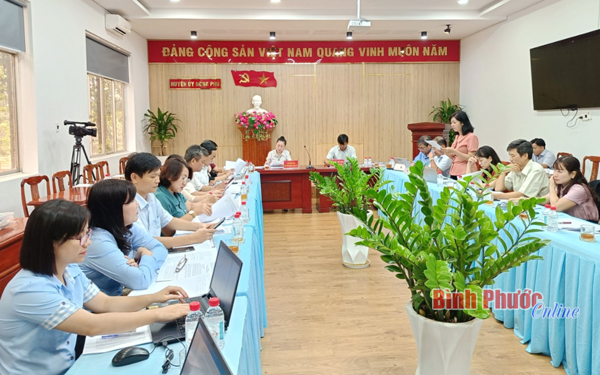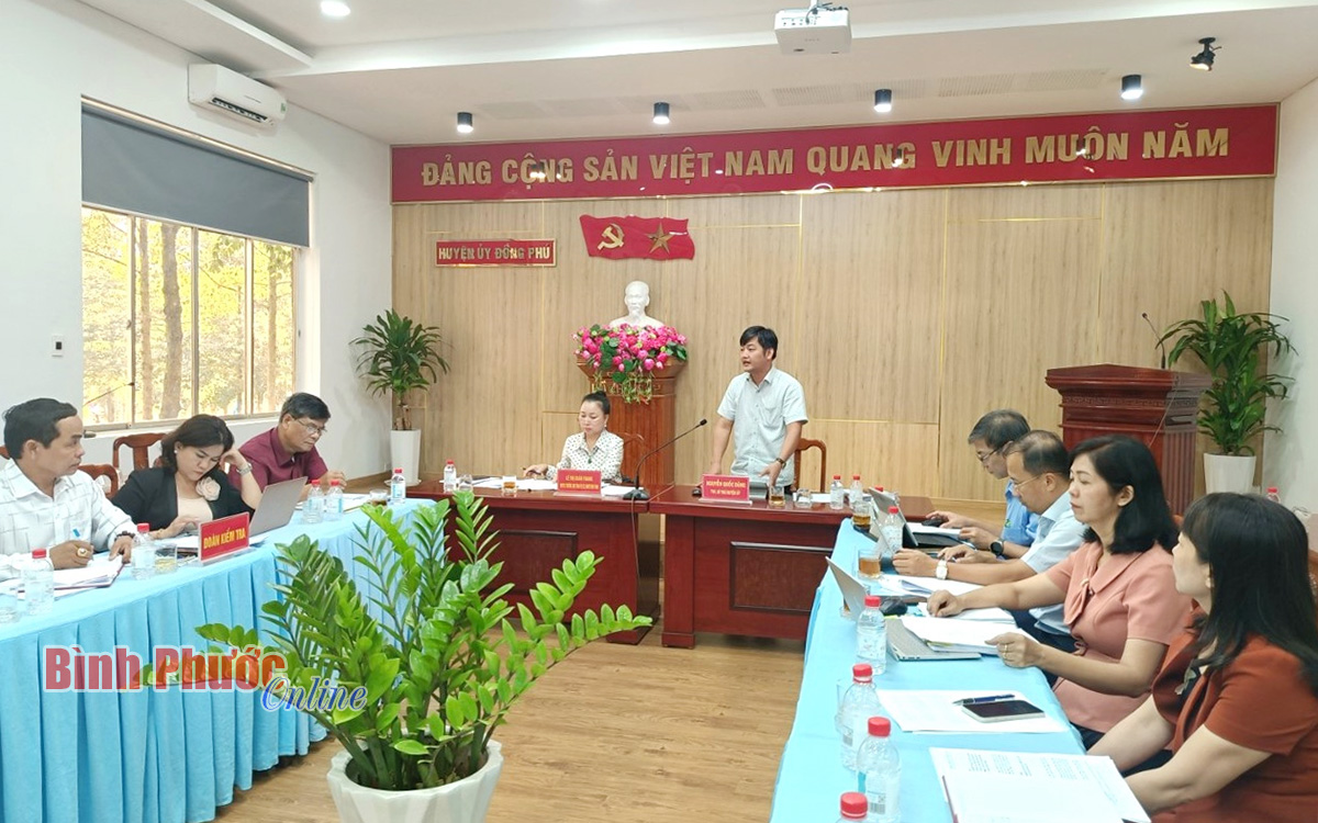 Các thành viên đoàn kiểm tra đề nghị huyện Đồng Phú làm rõ thêm một số nội dung báo cáo