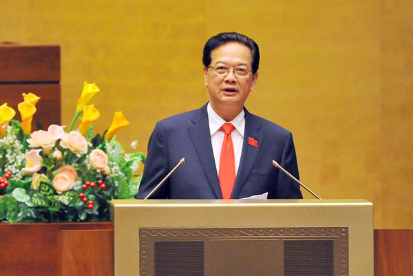 Trả lời chất vấn của các đại biểu Nguyễn Anh Sơn (Nam Định), Lê Nam (Thanh Hoá), Trương Trọng Nghĩa (TPHCM) về tranh chấp chủ quyền, tình hình diễn biến phức tạp trên biển Đông, quan hệ Việt Nam – Trung Quốc, Thủ tướng Nguyễn Tấn Dũng cho biết: Theo chỉ đạo của Bộ Chính trị, Chính phủ đã nhiều lần trình bày với Quốc hội lập trường, quan điểm, chủ trương của Đảng và Nhà nước là rõ ràng, nhất quán và cơ bản là phù hợp, đã đạt được nhiều kết quả tích cực, nhưng cũng còn không ít khó khăn, thách thức. Chúng ta cần tiếp tục kiên định, kiên trì thực hiện sáng tạo, hiệu quả các lập trường, quan điểm, chủ trương của Đảng và Nhà nước đối với các vấn đề mà ĐBQH đã nêu ra.
