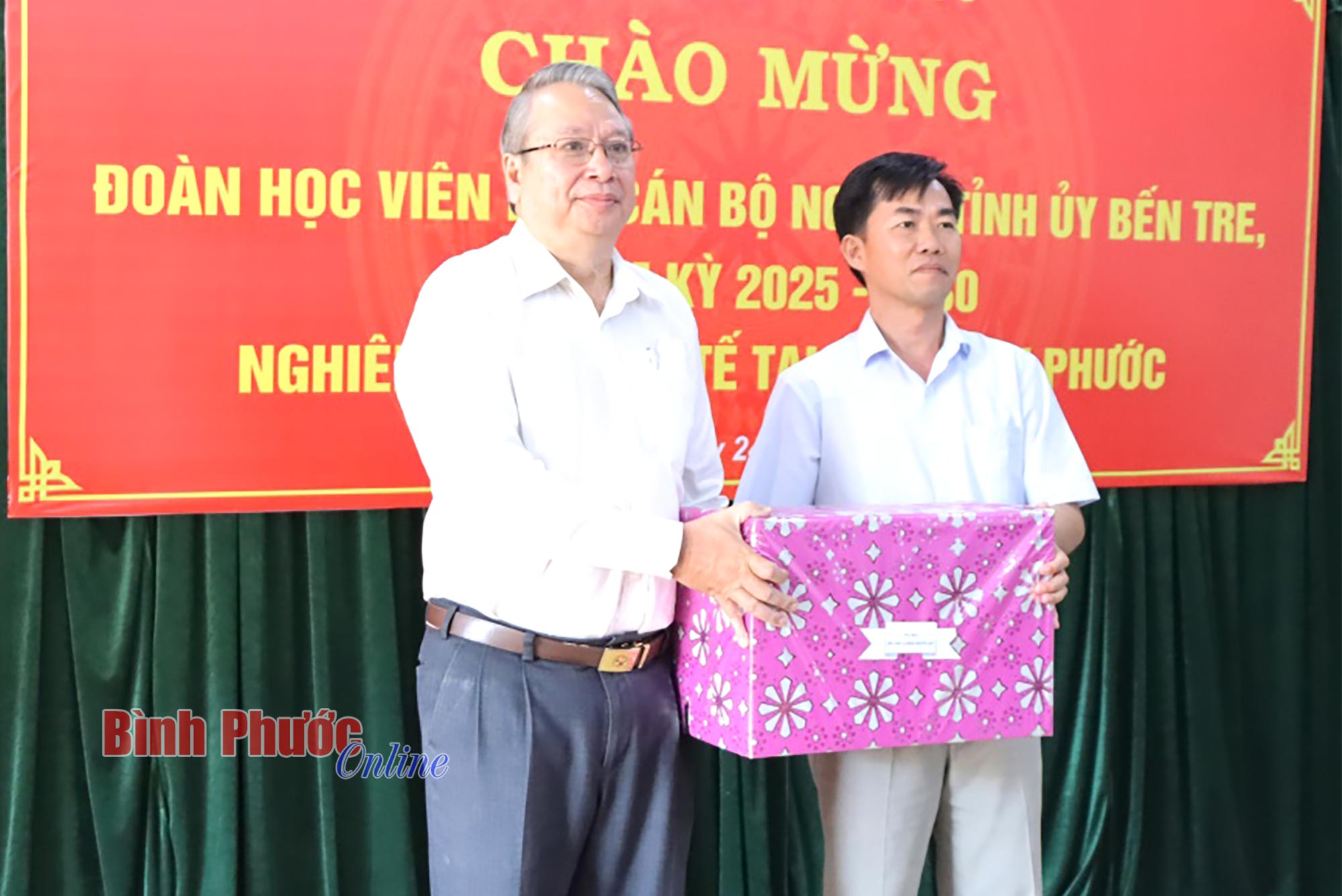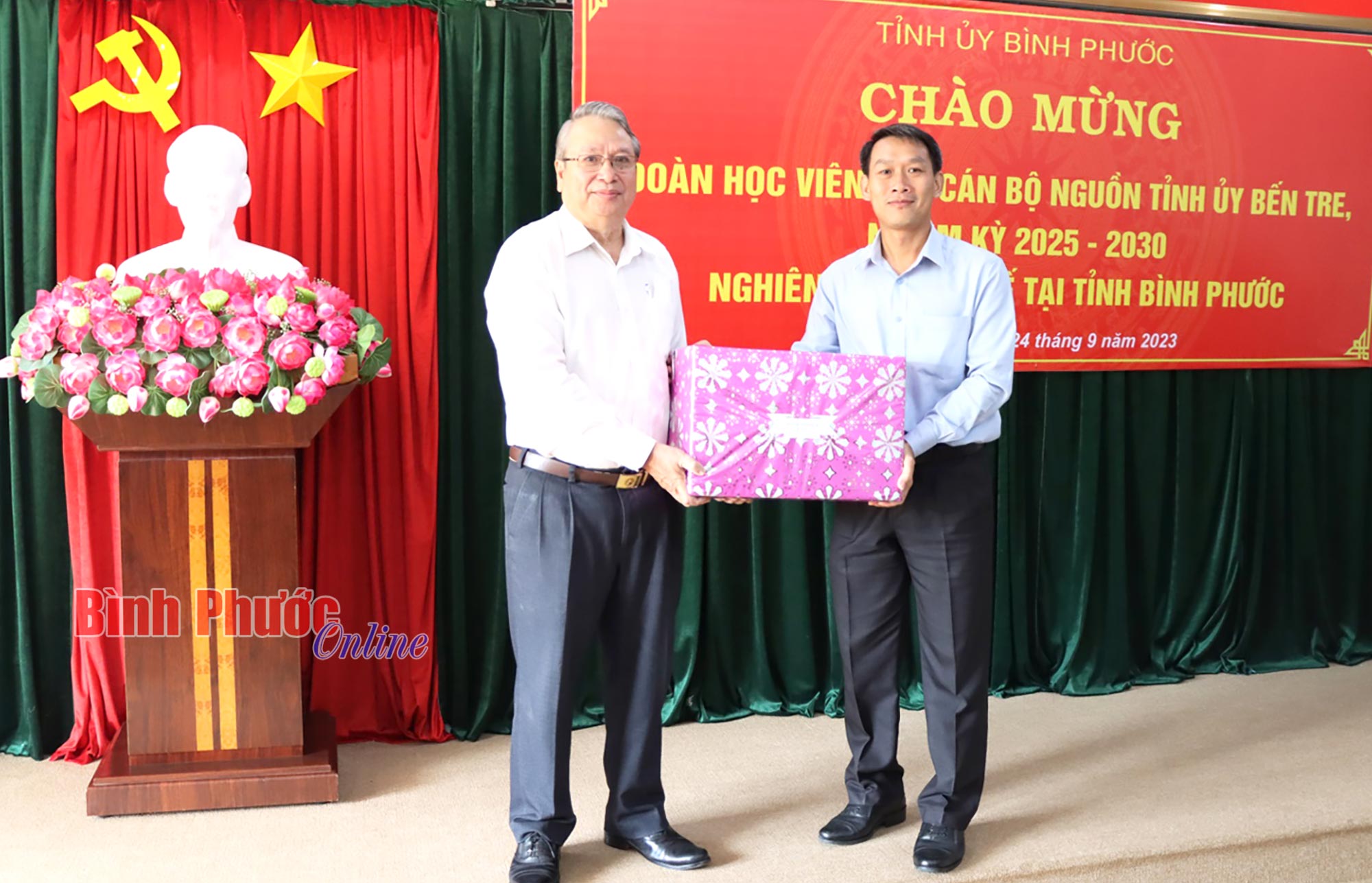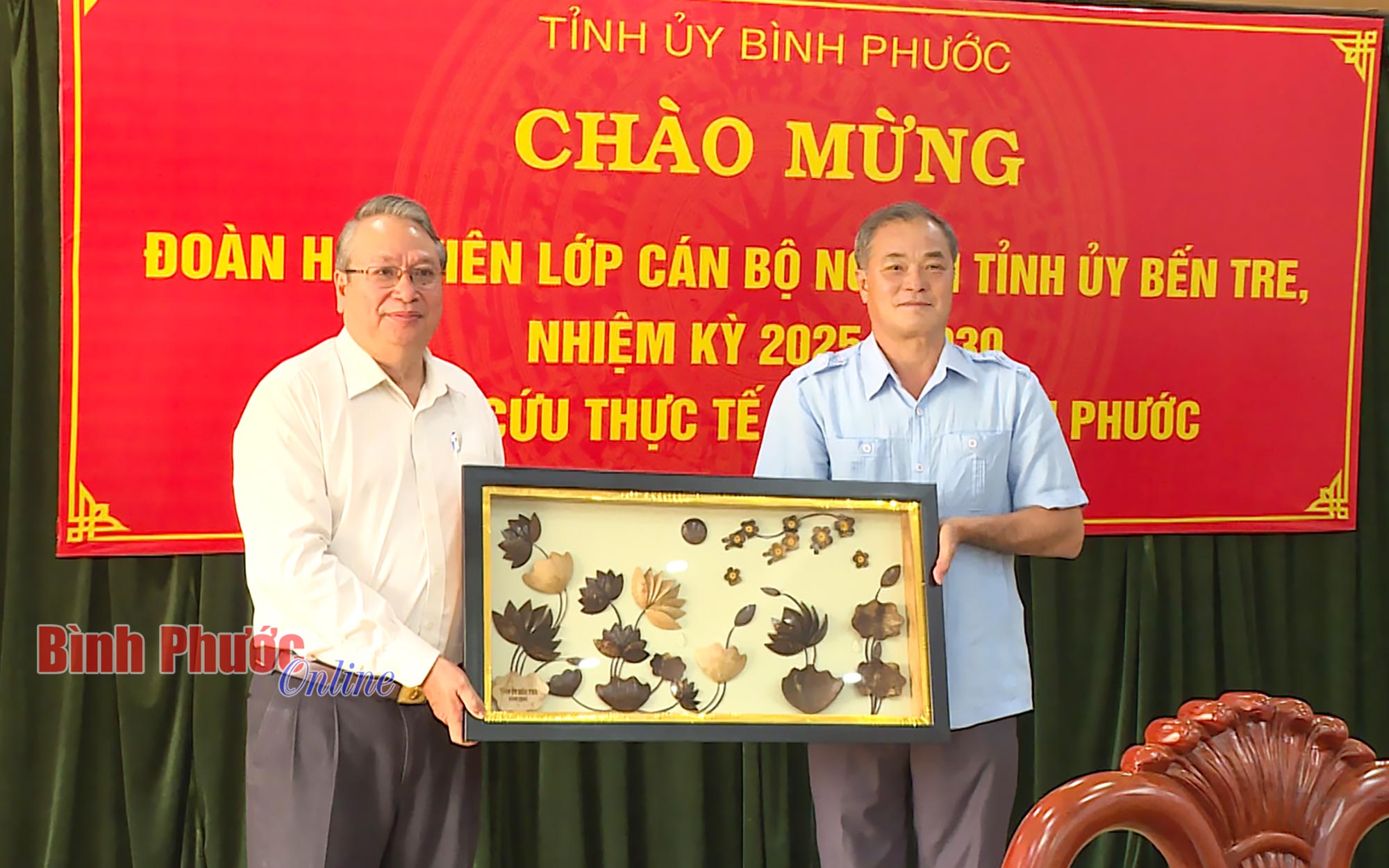 Dịp này, lãnh đạo Tỉnh ủy Bến Tre tặng quà lưu niệm cho Tỉnh ủy, Ban Tổ chức Tỉnh ủy và Trường Chính trị tỉnh Bình Phước