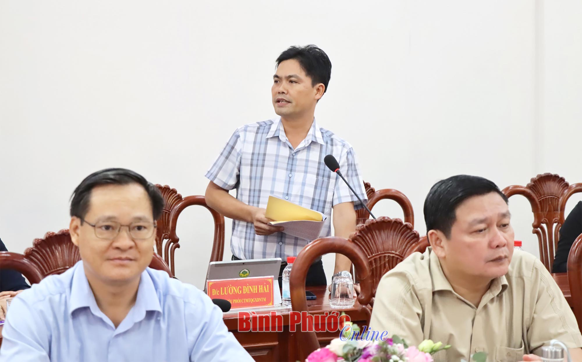 Tại buổi làm việc, đại diện lãnh đạo các sở, ban, ngành tỉnh Bình Phước đã trao đổi, thảo luận và chia sẻ với đoàn về vai trò của cấp ủy, chính quyền trong định hướng, phát triển bền vững, phát triển kinh tế xanh, thân thiện với môi trường ở Bình Phước; kinh nghiệm vận động, thành lập các tổ chức đảng, đoàn thể và phát triển đảng viên, đoàn viên, hội viên trong doanh nghiệp ngoài nhà nước; giải pháp về lợi thế phát huy nguồn lực xây dựng xã, huyện nông thôn mới…