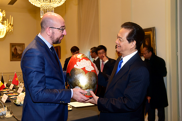 Thủ tướng Nguyễn Tấn Dũng tặng Thủ tướng Bỉ sản phẩm mỹ nghệ của Việt Nam