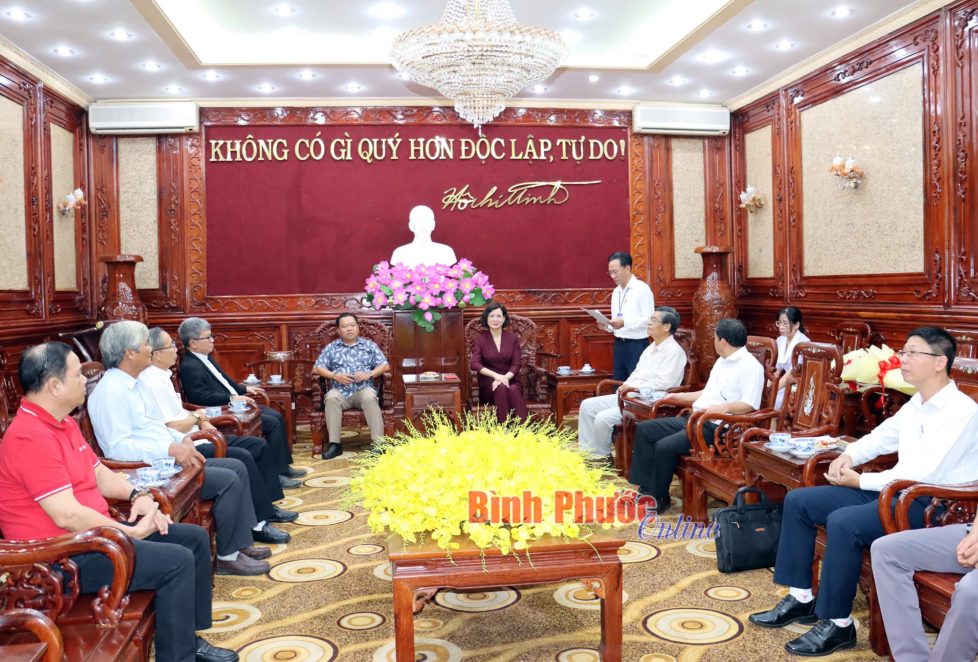 Ủy viên Ban Thường vụ Tỉnh ủy, Phó Chủ tịch UBND tỉnh Trần Tuyết Minh, lãnh đạo các sở, ban, ngành liên quan gặp mặt Linh mục Nguyễn Minh Chánh, Chủ tịch Ủy ban ĐKCG Việt Nam tỉnh Bình Phước và các đại biểu chính thức đi dự đại hội