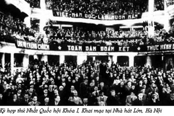 Chính phủ liên hiệp kháng chiến do Chủ tịch Hồ Chí Minh đứng đầu được công nhận tại Kỳ họp thứ nhất, quốc hội khóa I, ngày 2-3-1946. Ảnh tư liệu |