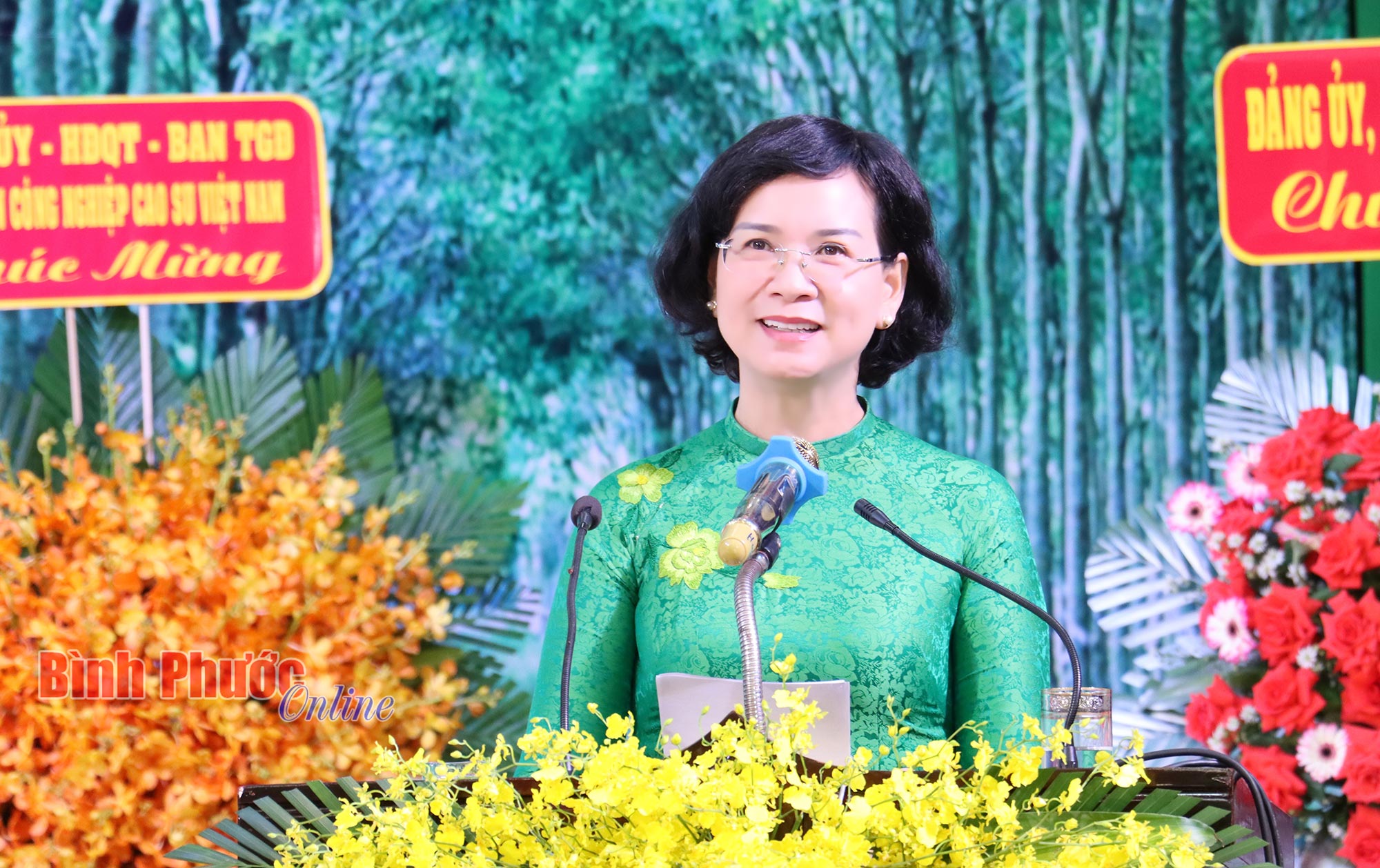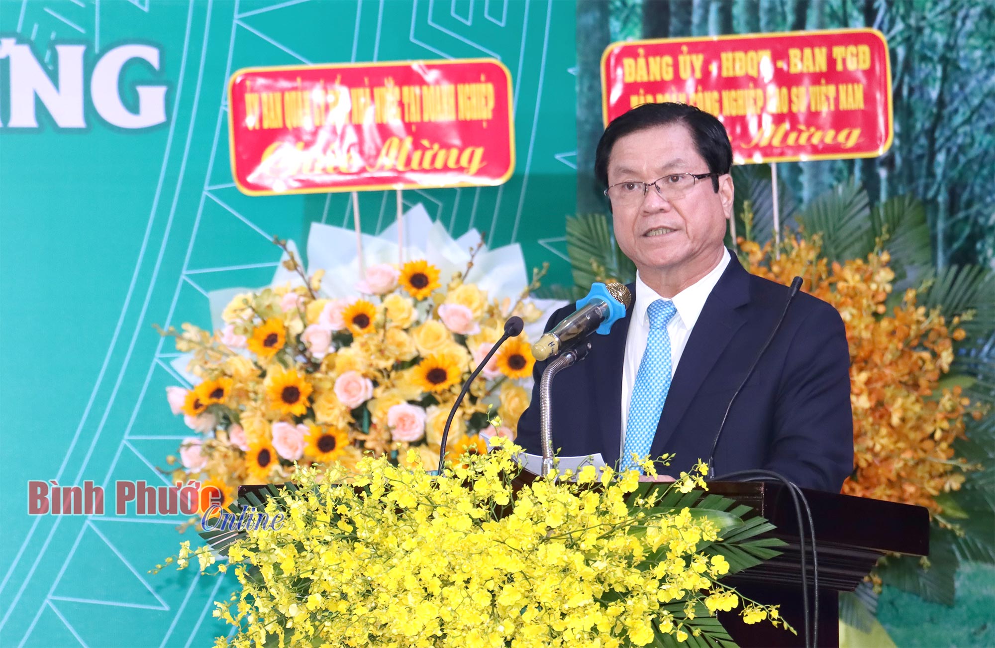 Phát biểu chào mừng, Phó Bí thư Đảng ủy, Tổng Giám đốc Tập đoàn Công nghiệp Cao su Việt Nam Lê Thanh Hưng chia sẻ: Người thợ cao su hôm nay luôn khát vọng về một ngành cao su Việt Nam phát triển bền vững, đời sống công nhân ấm no, hạnh phúc
