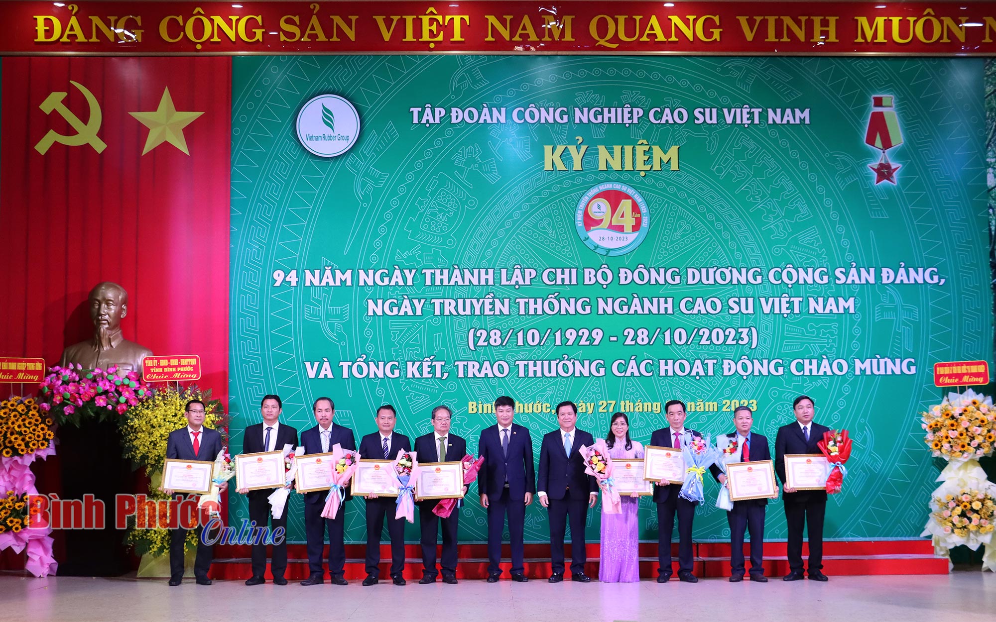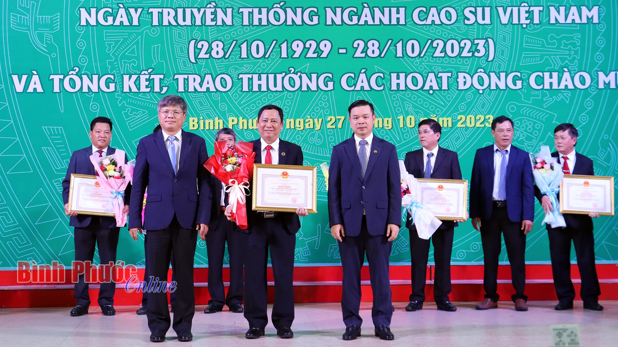 Dịp này, có 2 tập thể và 3 cá nhân được nhận Huân chương Lao động hạng Ba của Chủ tịch nước về thành tích trong công tác từ năm 2017 đến năm 2021. Chủ tịch Ủy ban Quản lý vốn Nhà nước tại doanh nghiệp cũng khen thưởng cho 27 tập thể, cá nhân của Tập đoàn Công nghiệp Cao su Việt Nam đã có thành tích xuất sắc trong công tác và các tập thể, cá nhân đã có thành tích tiêu biểu, xuất sắc trong giai đoạn 2018-2022.