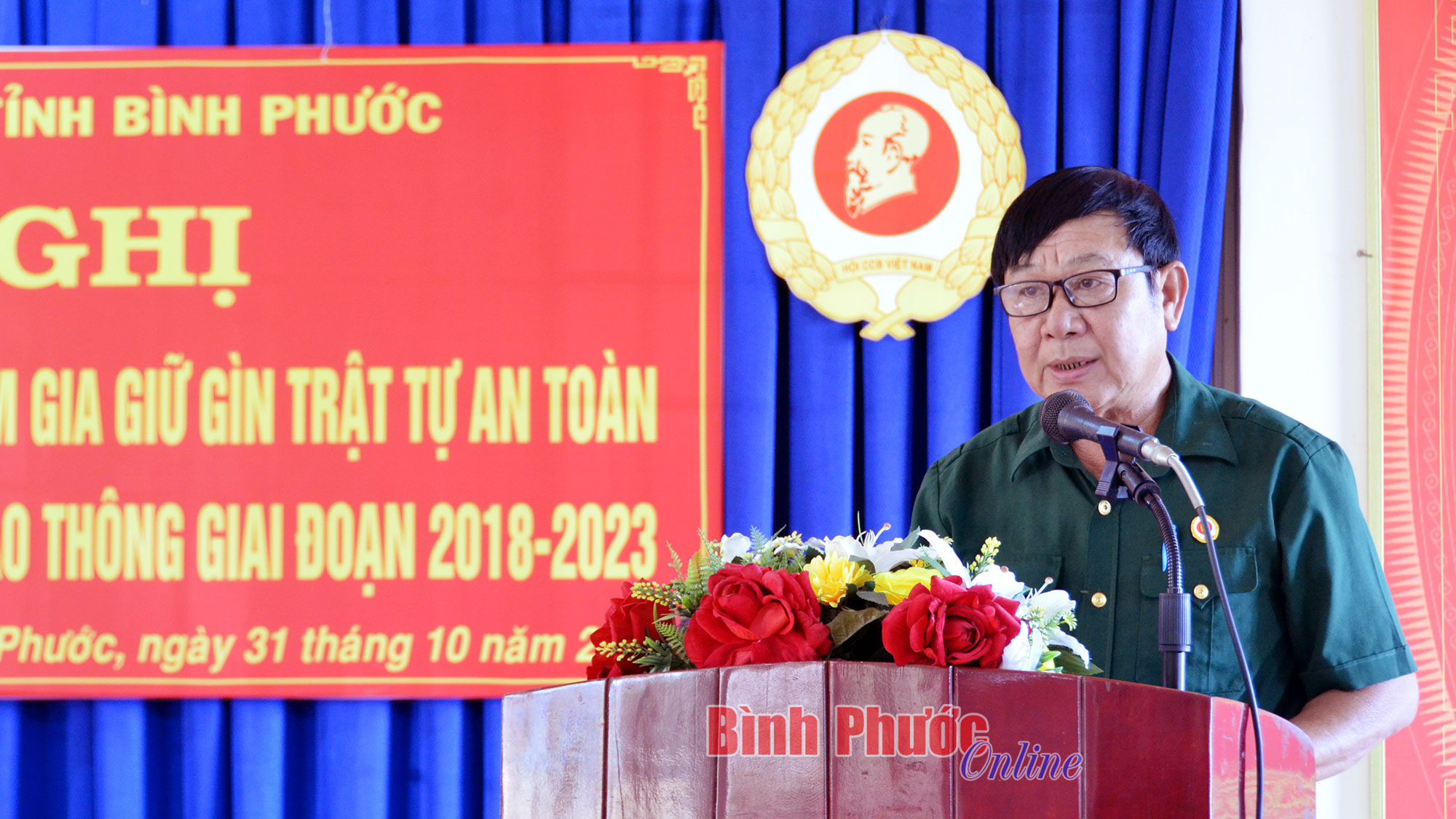Trong giai đoạn 2018-2023, các cấp hội và hội viên cựu chiến binh ở Bình Phước đã phát huy vai trò, trách nhiệm tổ chức thực hiện nghiêm túc, chặt chẽ, hiệu quả việc giữ gìn trật tự an toàn giao thông và xây dựng văn hóa giao thông. Từ đó, góp phần tạo sự chuyển biến rõ nét trong nhận thức và ý thức chấp hành giao thông của cán bộ, hội viên và nhân dân.
