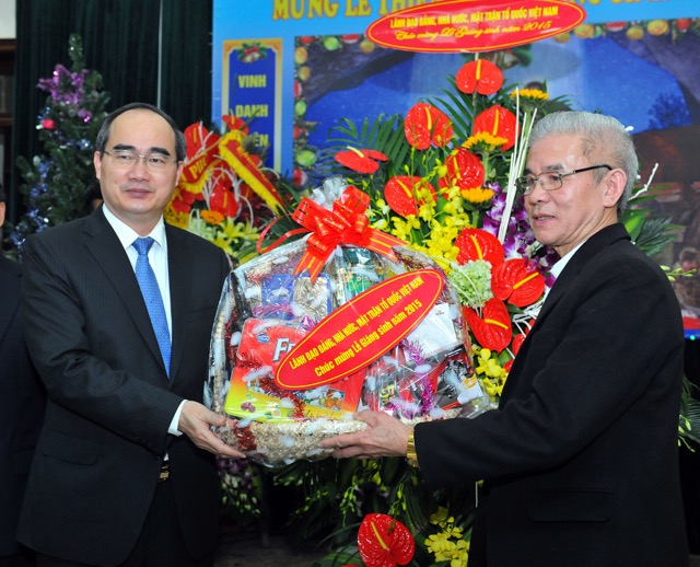 Thay mặt lãnh đạo Đảng, Nhà nước, Chủ tịch Ủy ban Trung ương MTTQ Việt Nam Nguyễn Thiện Nhân gửi lời chúc mừng đến lãnh đạo Ủy ban Đoàn kết Công giáo Việt Nam cùng toàn thể bà con giáo dân sinh sống trong và ngoài nước đón Giáng sinh và năm mới an lành, hạnh phúc.