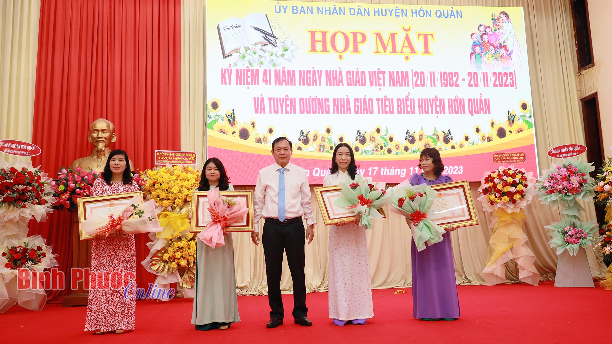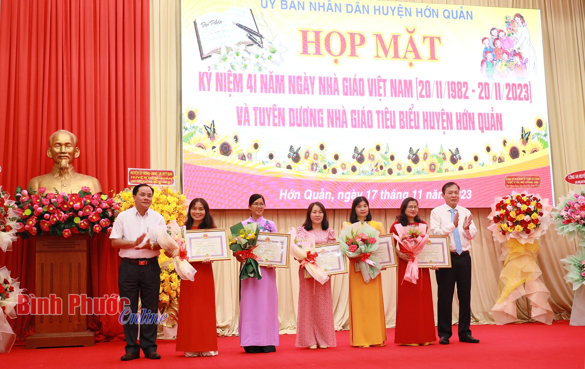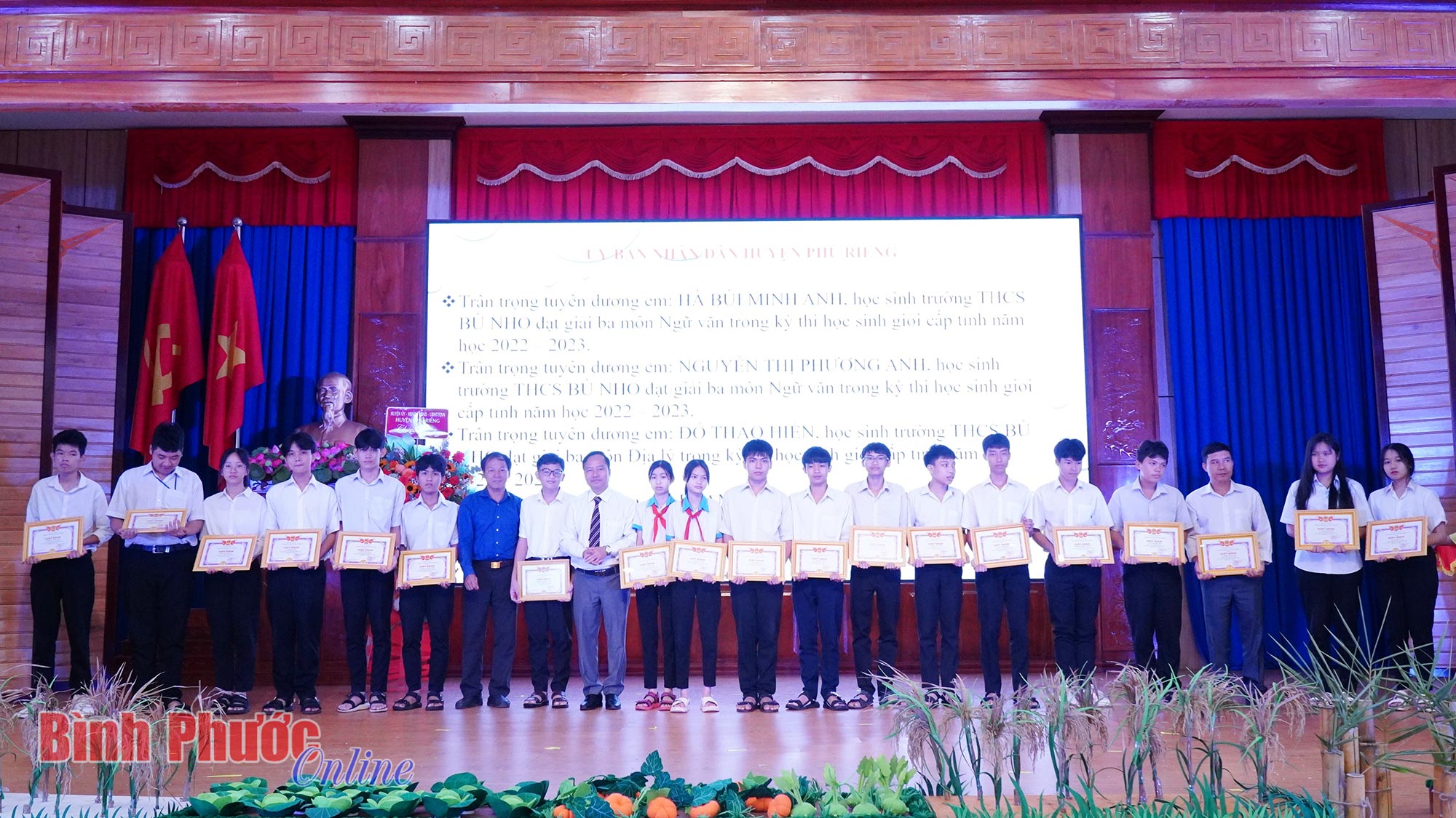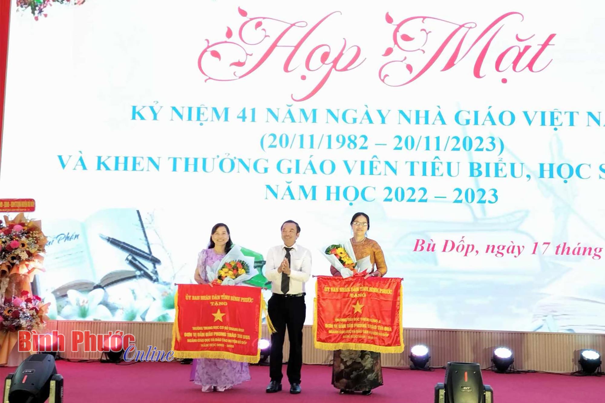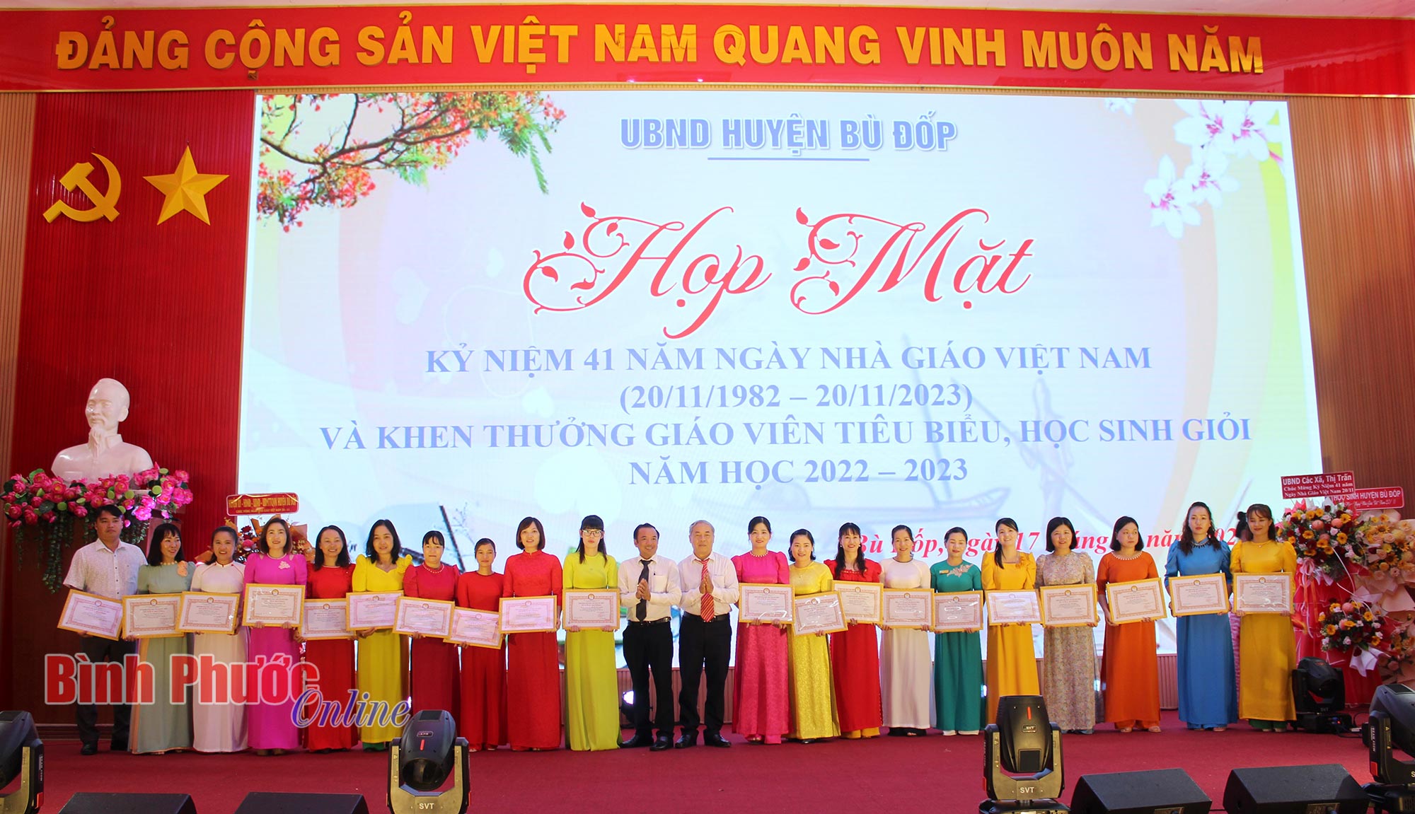 Cũng tại buổi lễ, UBND huyện Bù Đốp đã tuyên dương 62 giáo viên dạy giỏi cấp tỉnh và 55 học sinh đạt giải cao tại các cuộc thi học sinh giỏi cấp tỉnh năm học 2022-2023.
