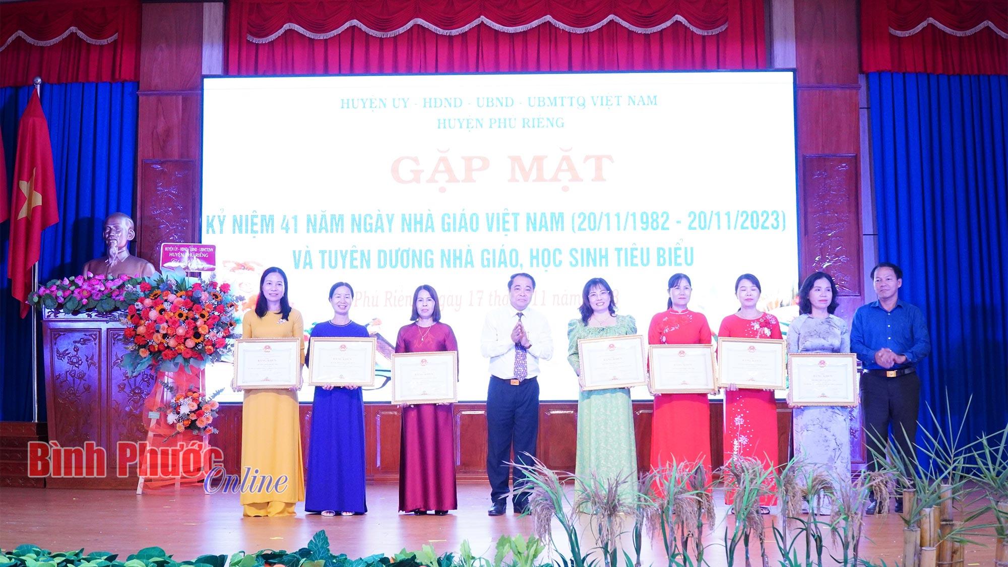 * Sáng 17-11, Huyện ủy - HĐND - UBND - Ủy ban MTTQ Việt Nam huyện Phú Riềng tổ chức gặp mặt kỷ niệm 41 năm Ngày nhà giáo Việt Nam và tuyên dương nhà giáo, học sinh tiêu biểu.